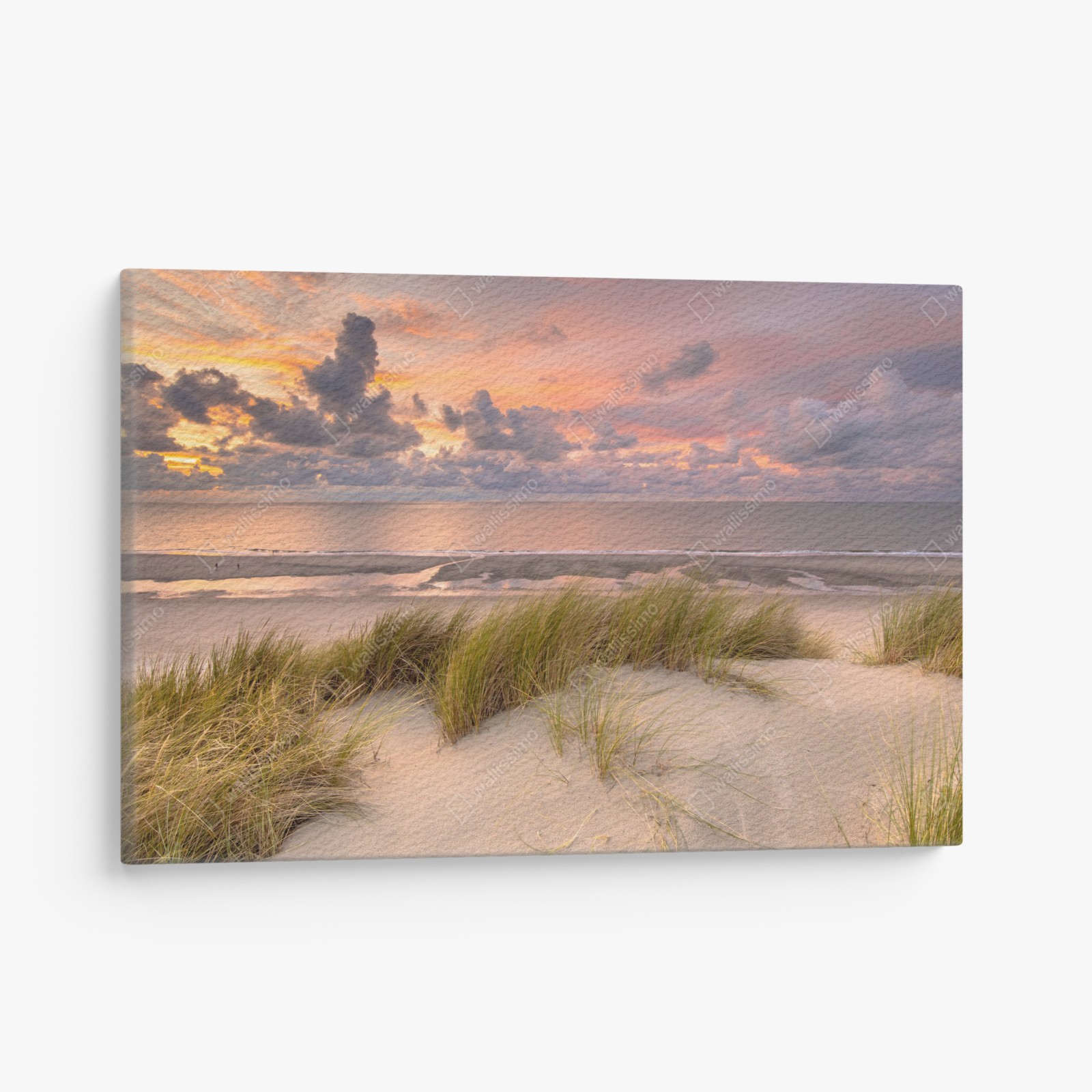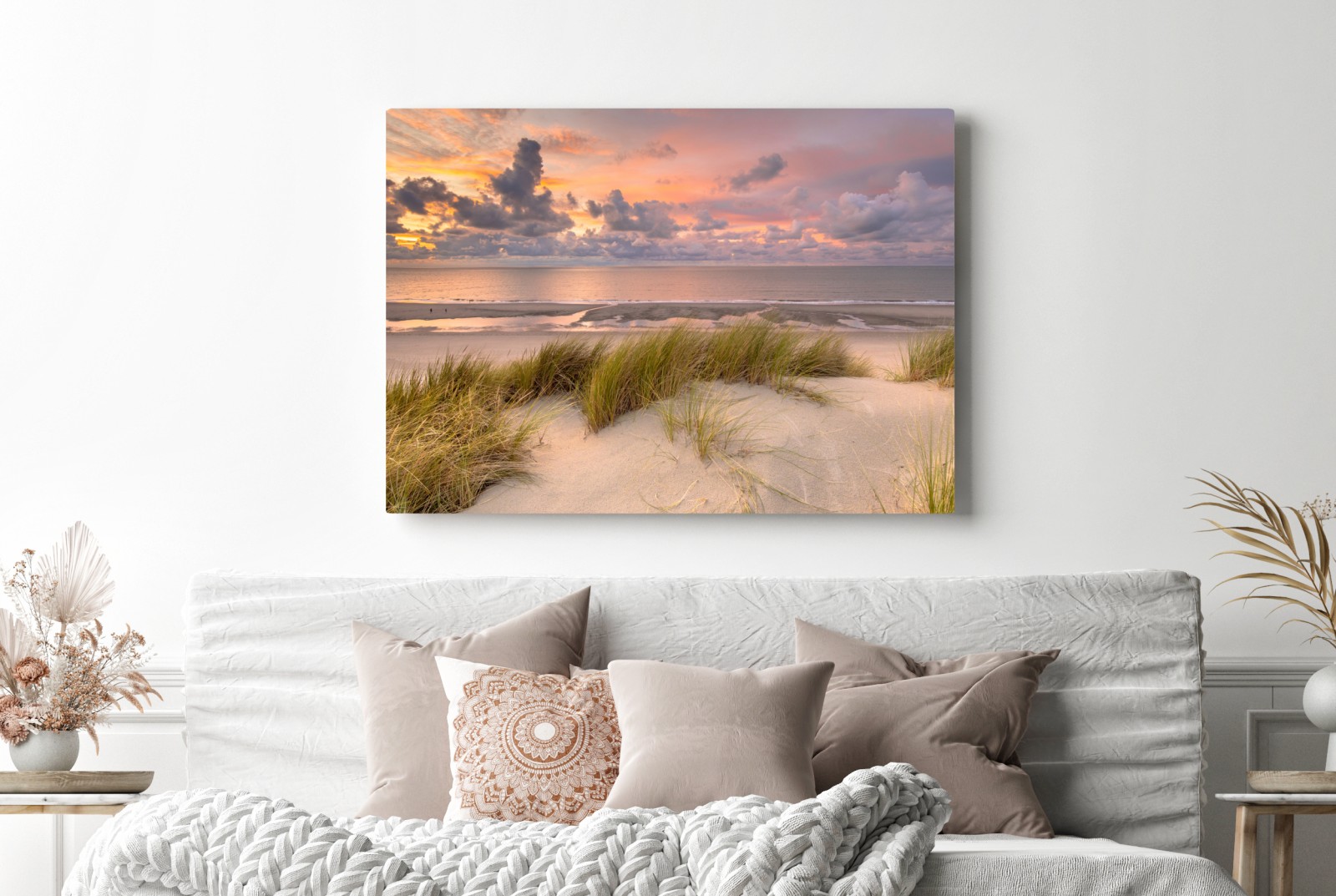 Leinwandbild Sonnenuntergang über dünen in Zeeland