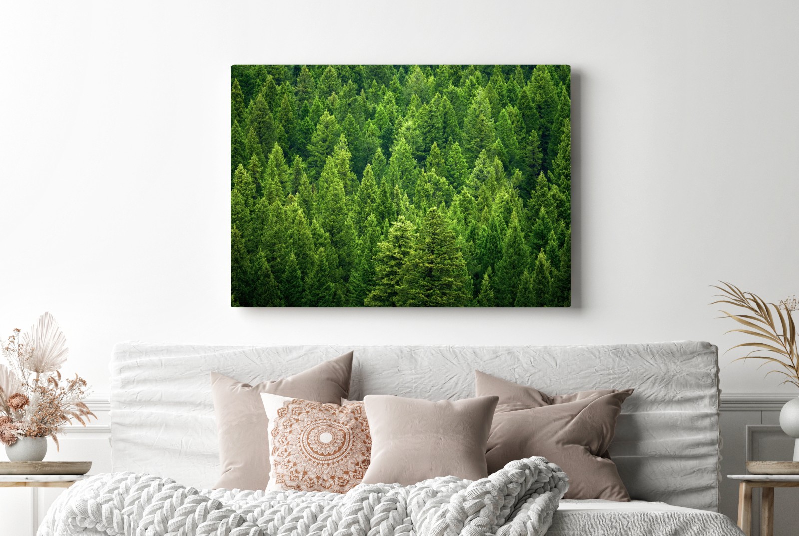 Leinwandbild Üppige kronen eines kieferwaldes