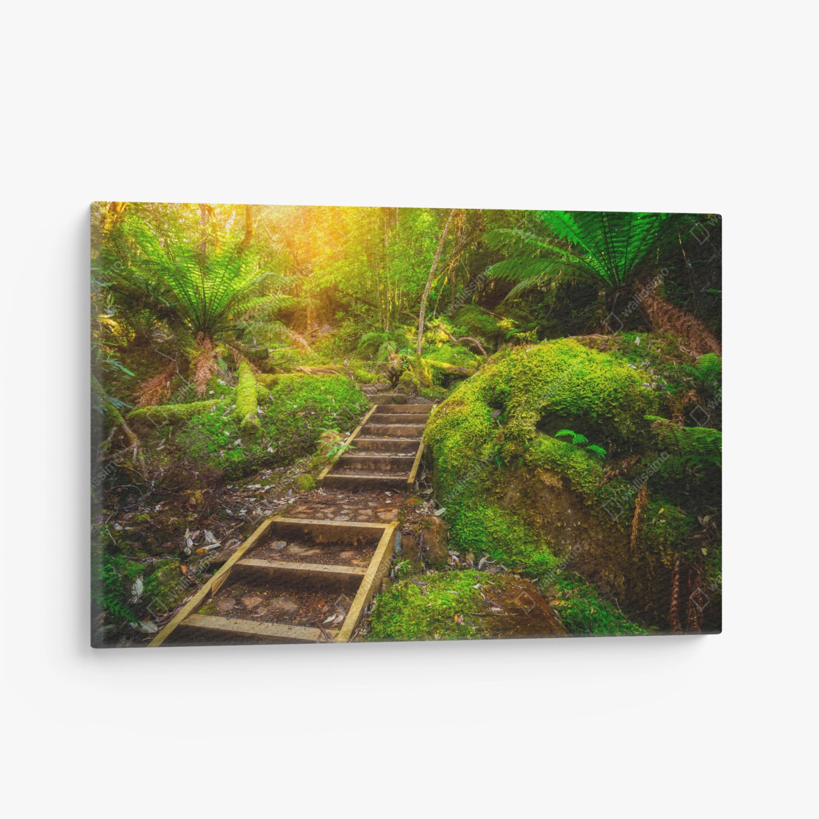 Leinwandbild Moosiger regenwaldpfad auf der Tasman-Halbinsel