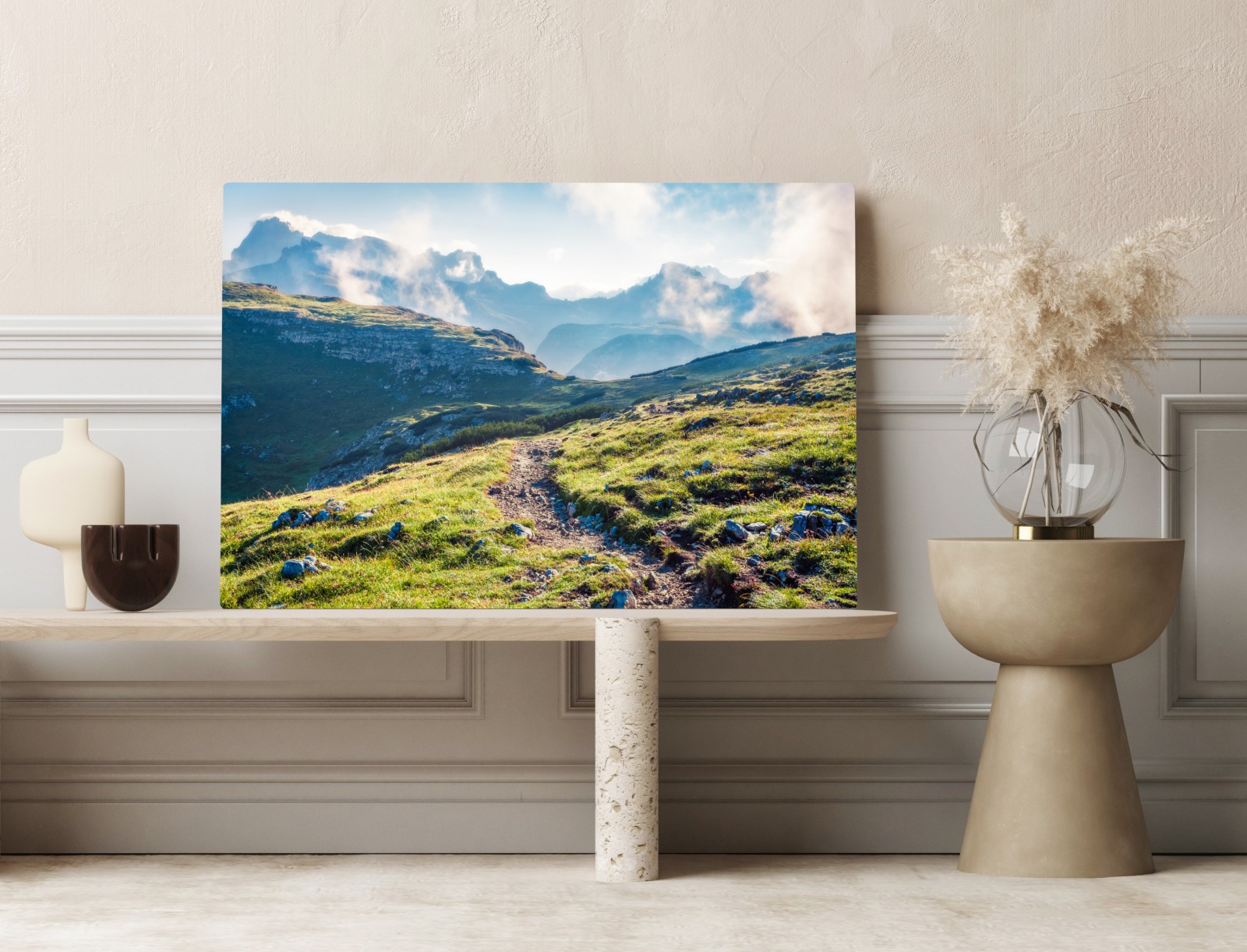 Leinwandbild Nebliger morgen auf Monte Piana, Dolomiten
