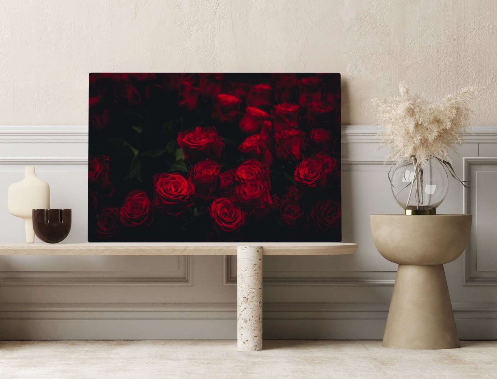 Verleihen Sie Ihrem Raum mit tiefroten Rosen eine dramatische und romantische Atmosphäre.MehrWeniger