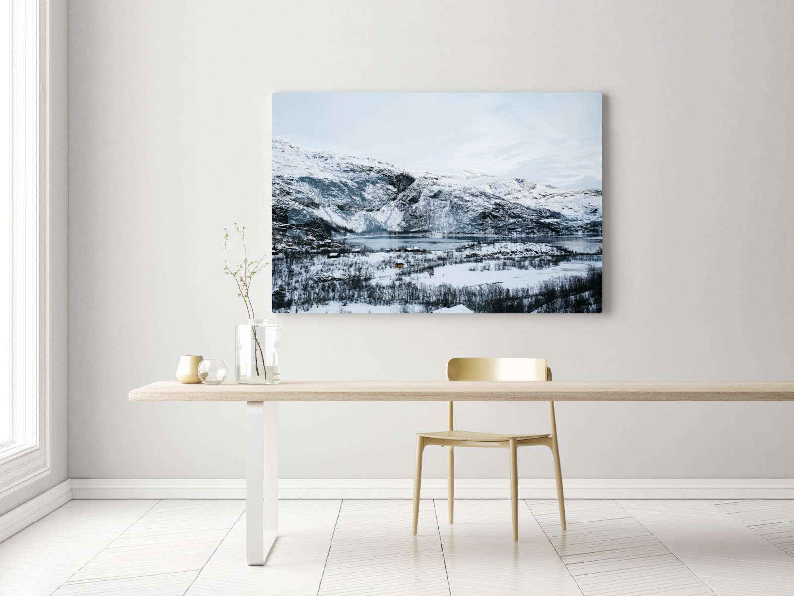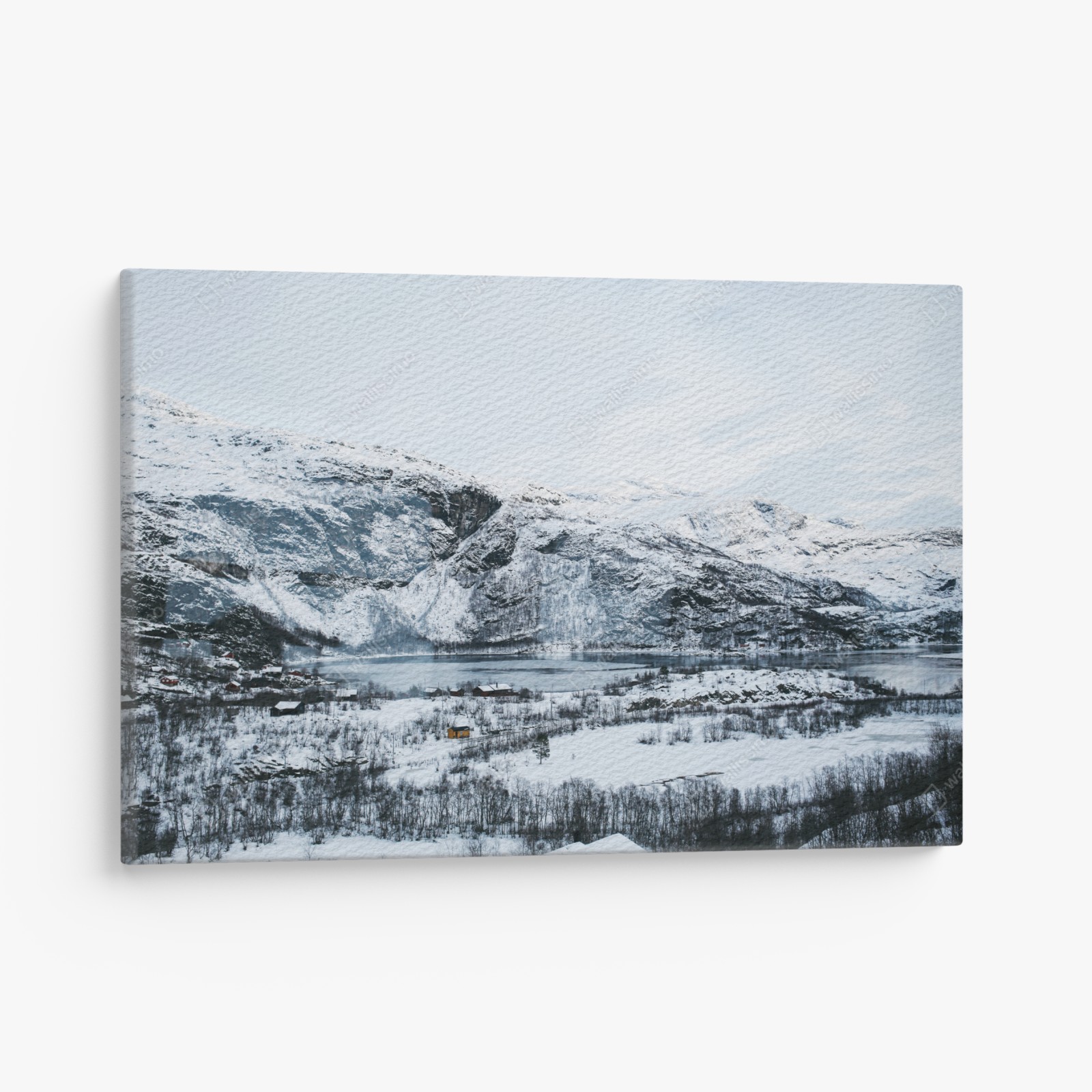 Leinwandbild Ruhige winterliche berglandschaft über zugefrorenem see