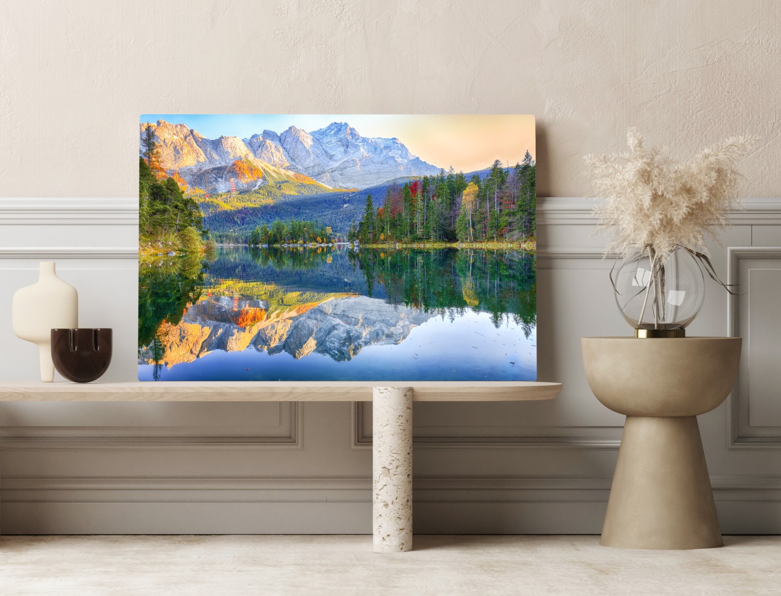 Leinwandbild Herbstliche spiegelung am Eibsee bei Zugspitze