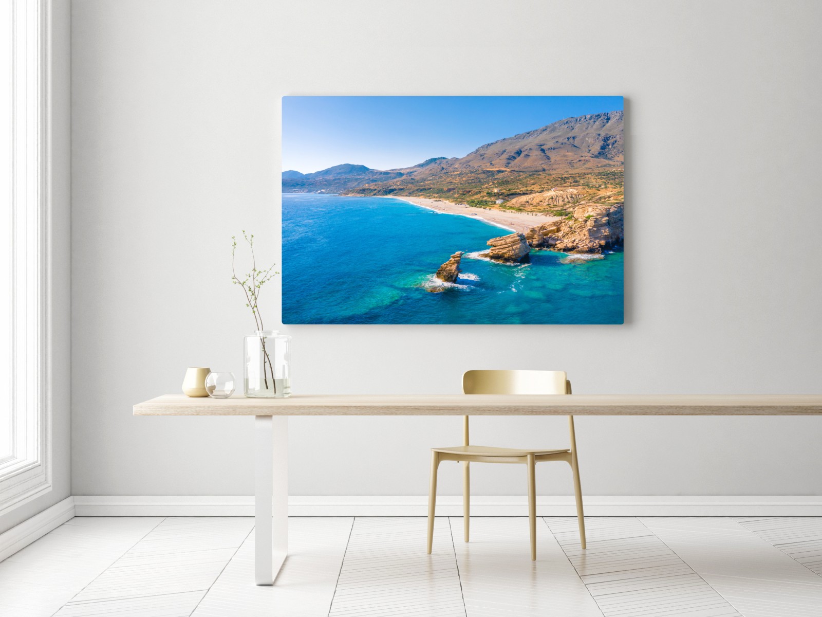 Bringen Sie mit diesem weiten Panorama einer sonnenverwöhnten türkisen Küste entspannende Naturstimmung in Ihr Zuhause und schaffen Sie eine friedliche Atmosphäre.MehrWeniger