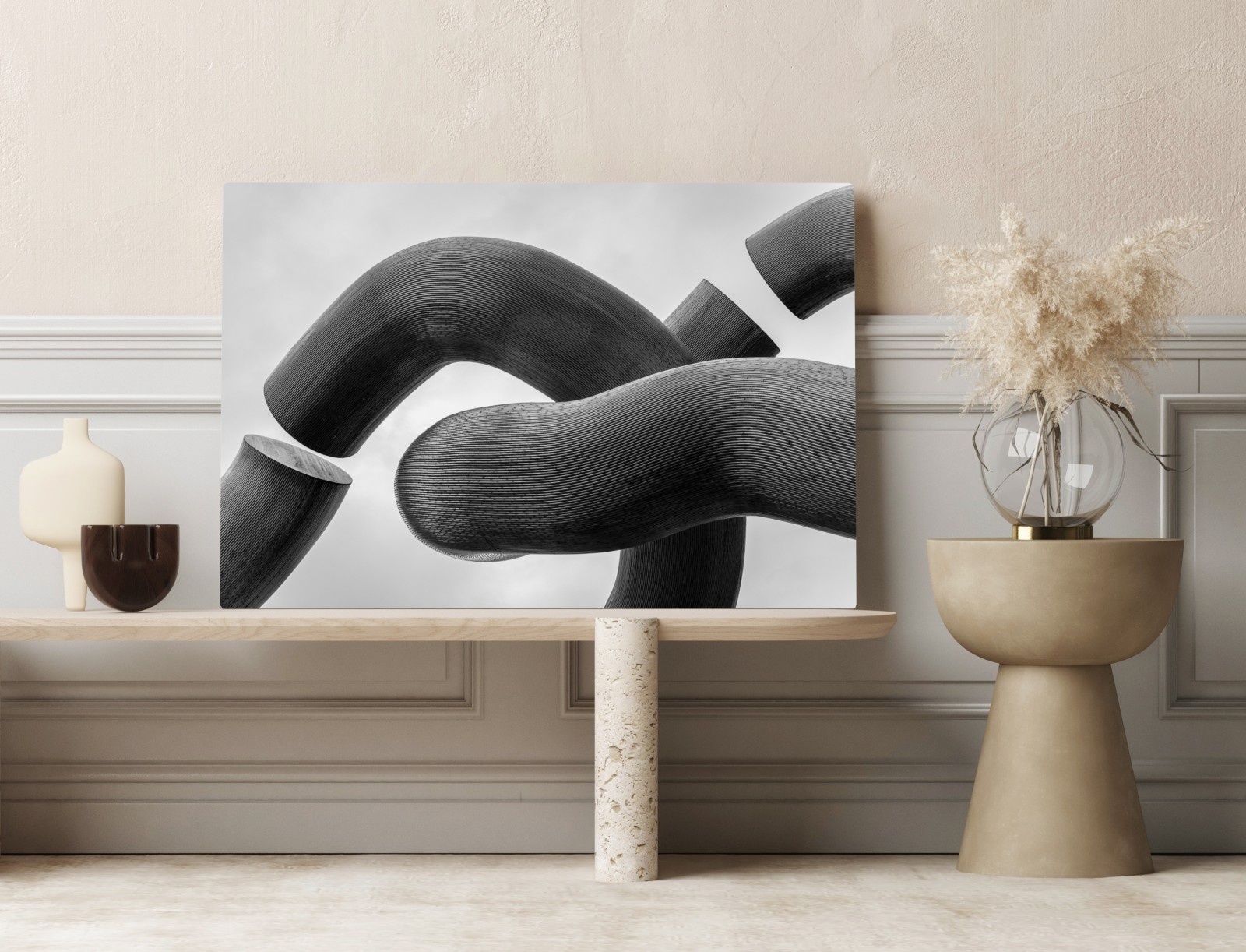 Leinwandbild Gekrümmte formen abstrakte skulptur in grau
