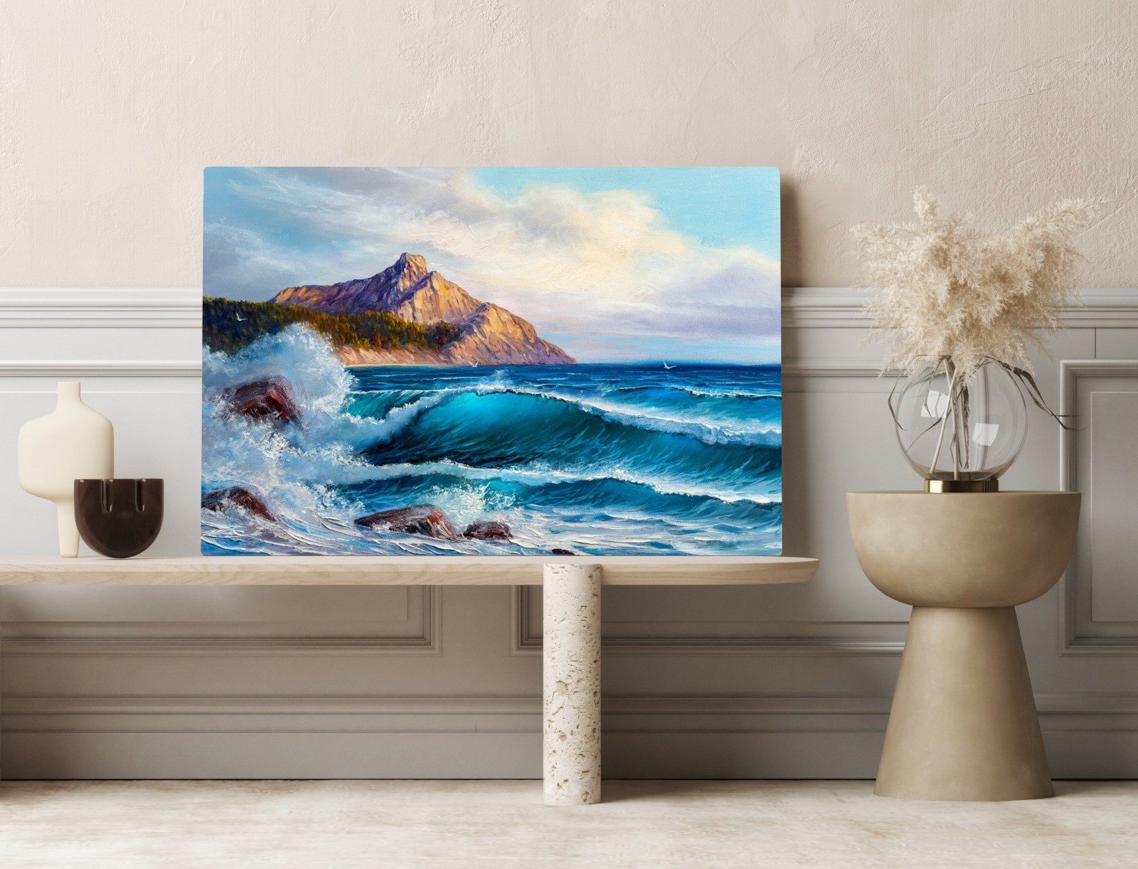 Leinwandbild Türkisblaue welle - meereslandschaft in öl