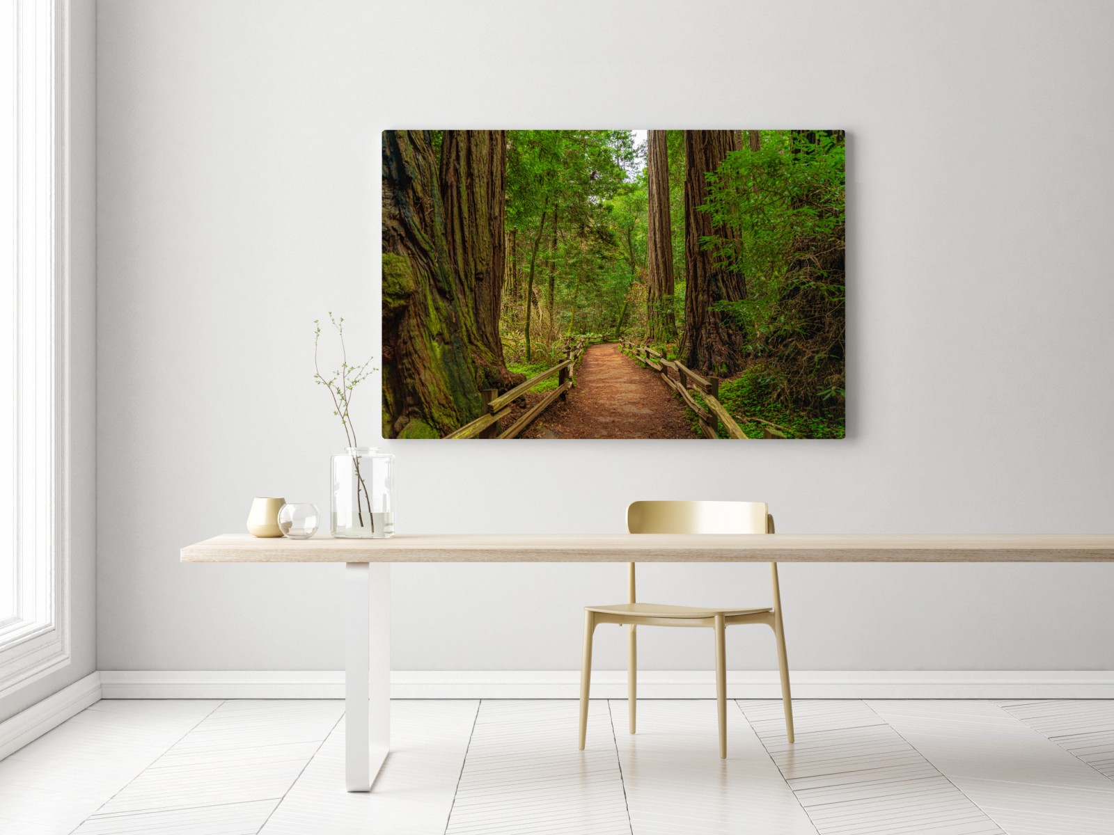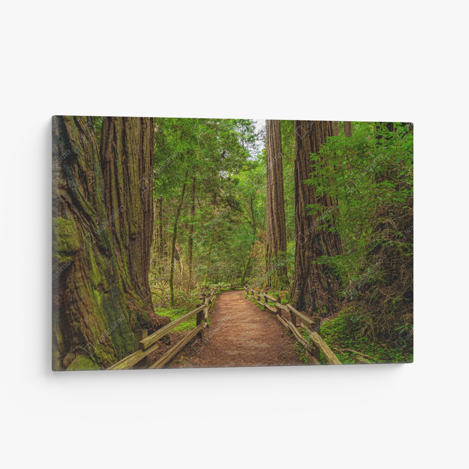 Leinwandbild Majestätischer waldpfad zwischen mammutbäumen