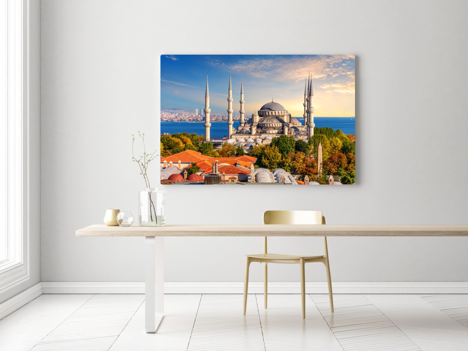 Leinwandbild Istanbul mit der Blauen Moschee bei Sonnenuntergang
