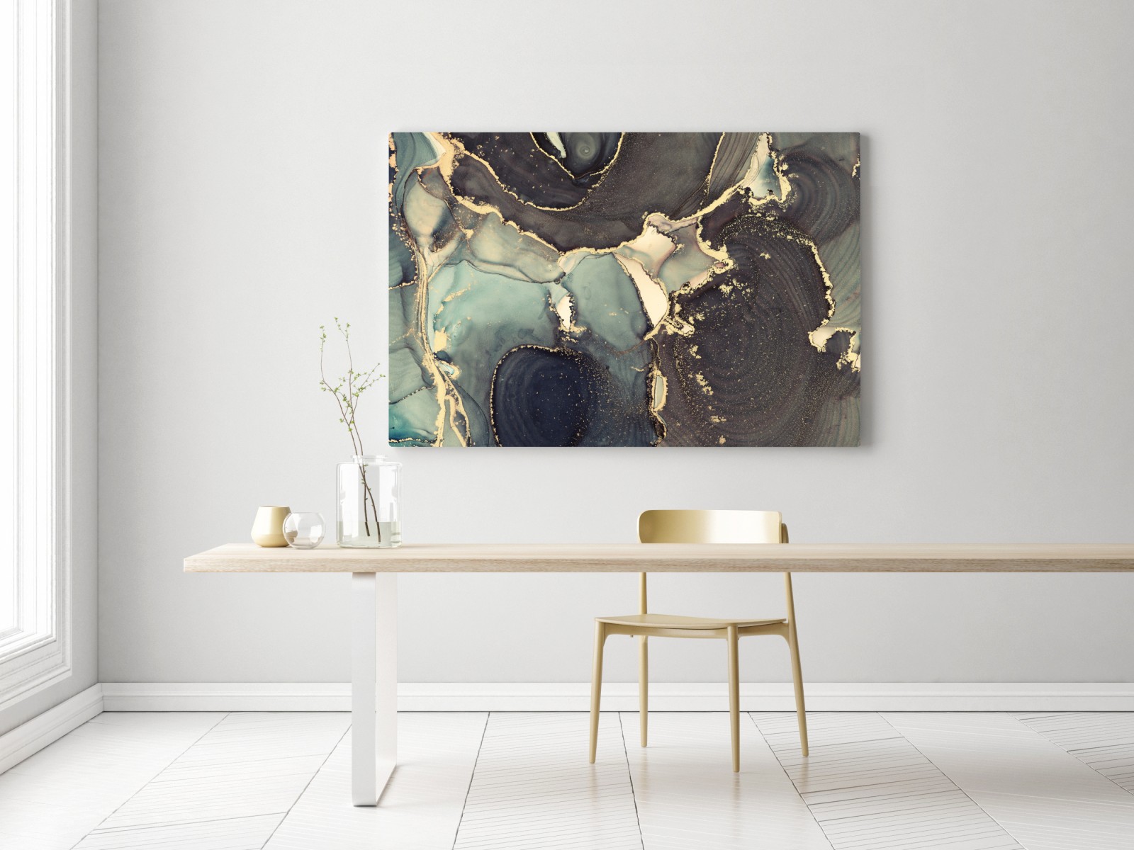 Leinwandbild Türkis und gold abstrakte fließmalerei