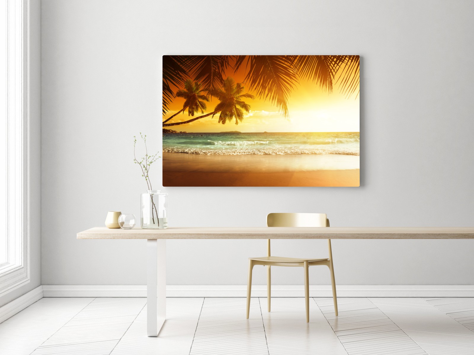 Leinwandbild Goldener sonnenuntergang an einem strand in der Karibik