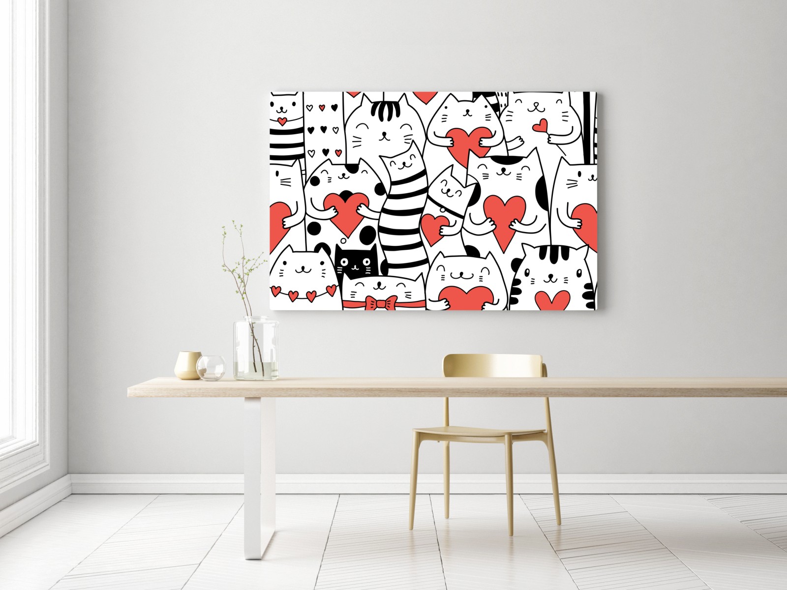 Leinwandbild Süße katzen mit herzen muster