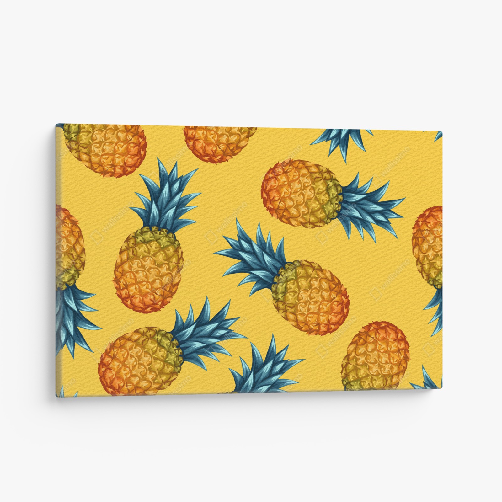 Leinwandbild Tropisches ananasmuster auf gelbem hintergrund
