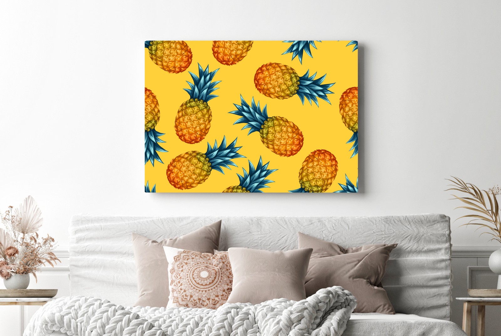 Lebhaftes tropisches Ananasmuster bringt sommerliche Stimmung in jeden Raum und setzt einen fröhlichen Farbakzent.MehrWeniger