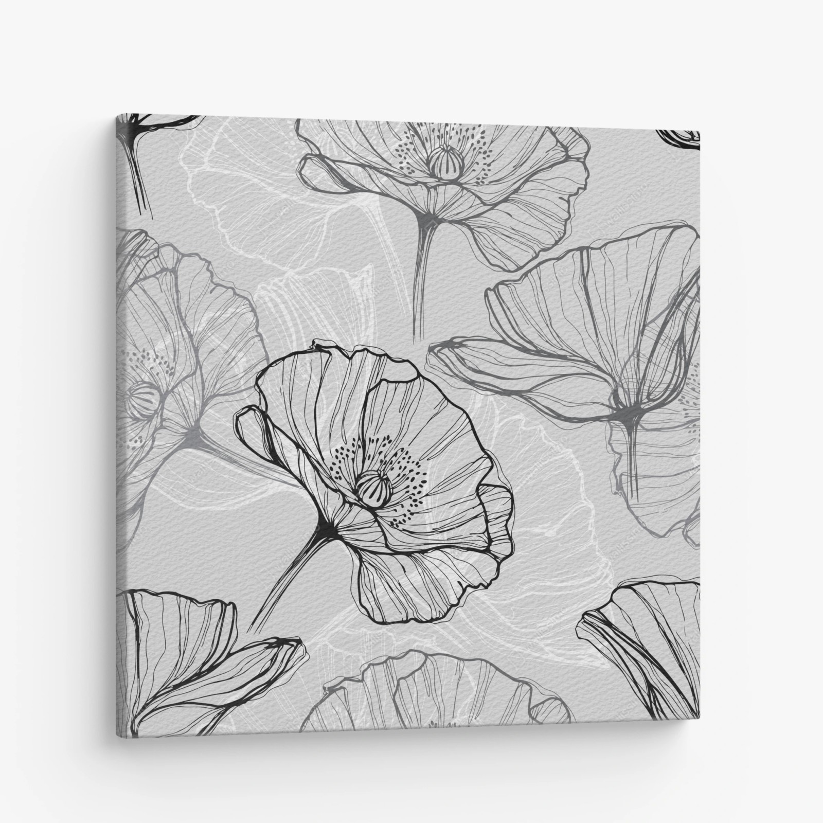 Leinwandbild Zarter grauer mohn in linienzeichnung