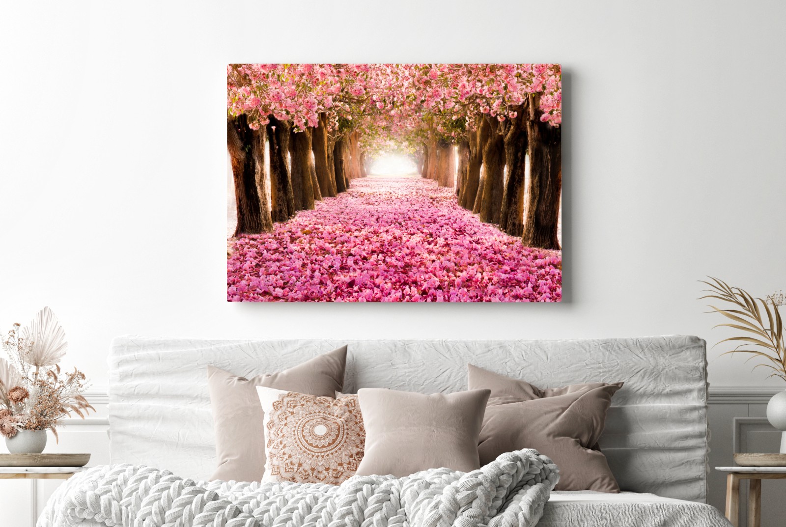 Leinwandbild Rosa blütenallee unter kirschbäumen