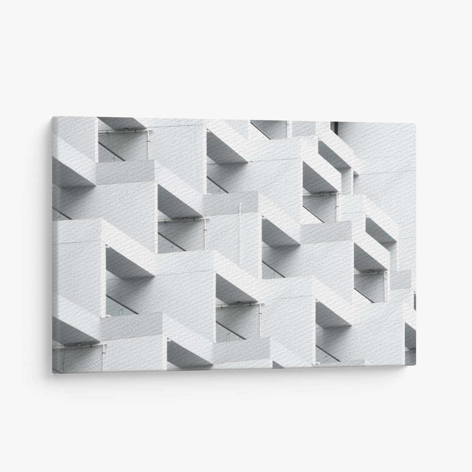 Leinwandbild Weiße betonfassade im geometrischen muster