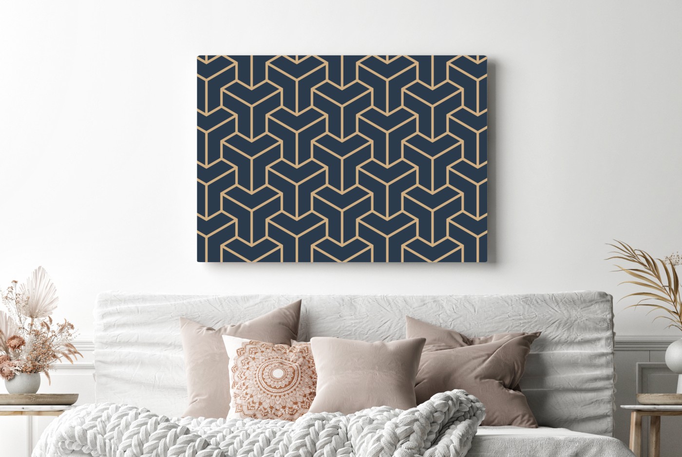 Leinwandbild Marineblaues geometrisches würfelmuster