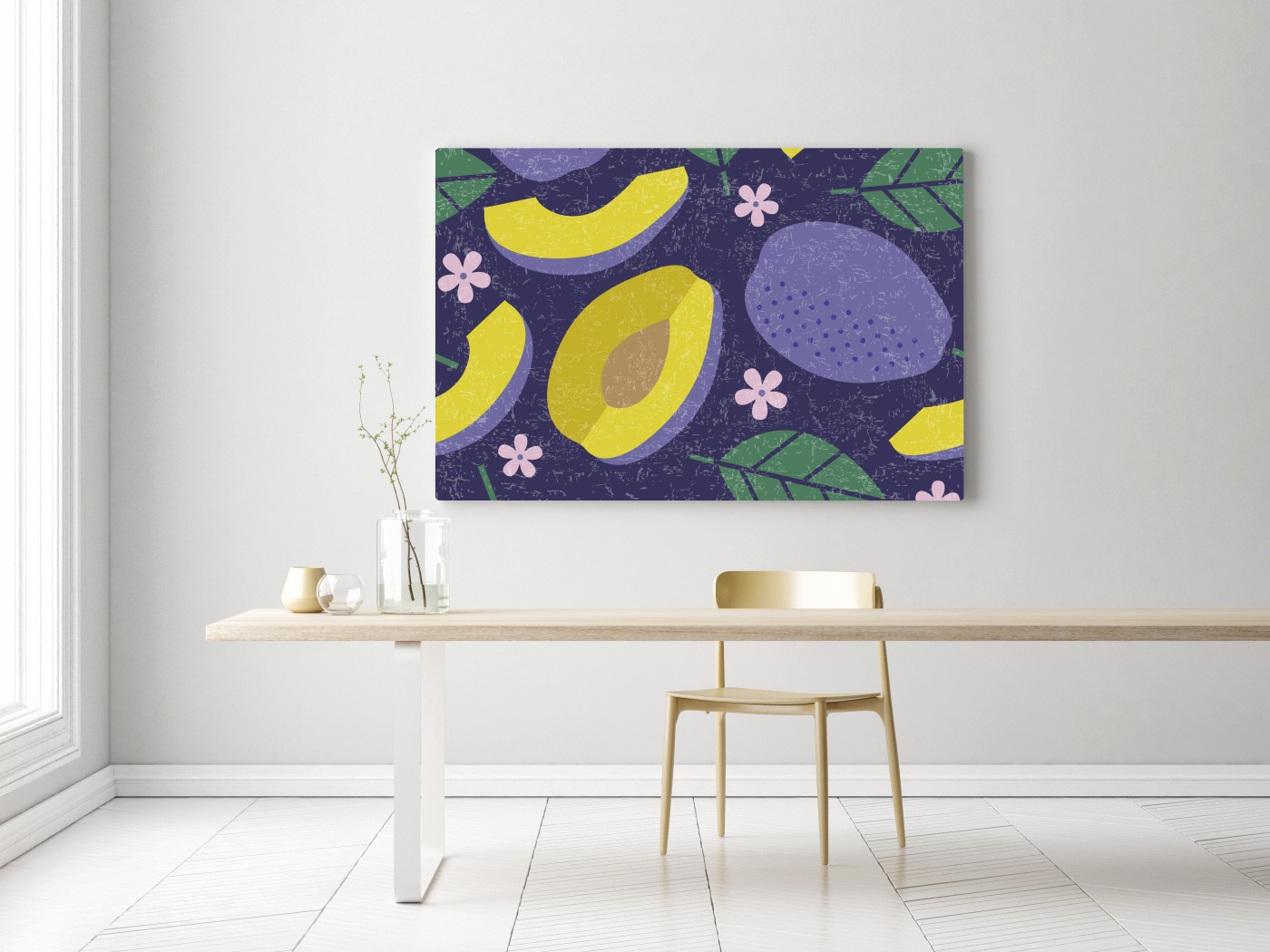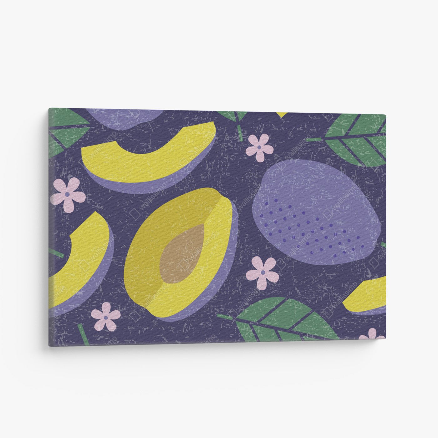 Leinwandbild Verspieltes pflaumenmuster mit blättern