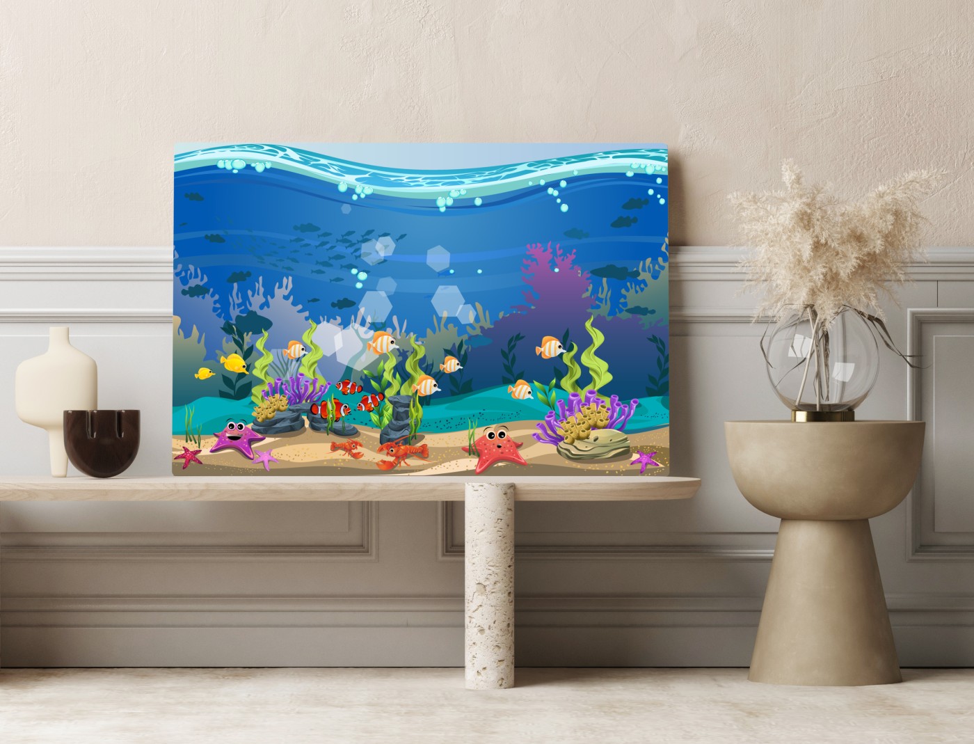 Bringen Sie eine lebendige Unterwasserwelt ins Zimmer mit verspielten Fischen, bunten Korallen und freundlichen Meeresbewohnern.MehrWeniger