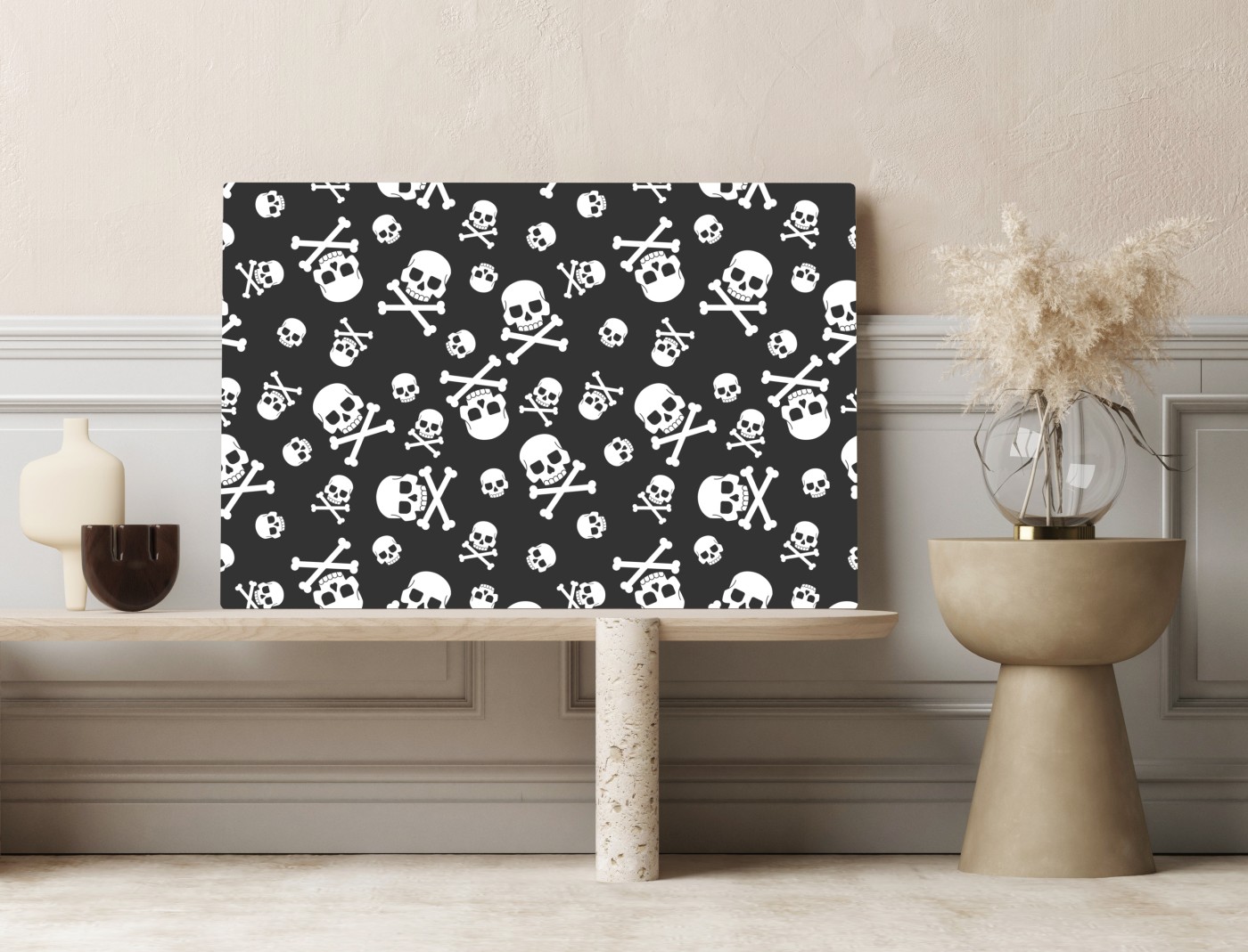 Leinwandbild Weißes totenkopf muster auf grauem hintergrund