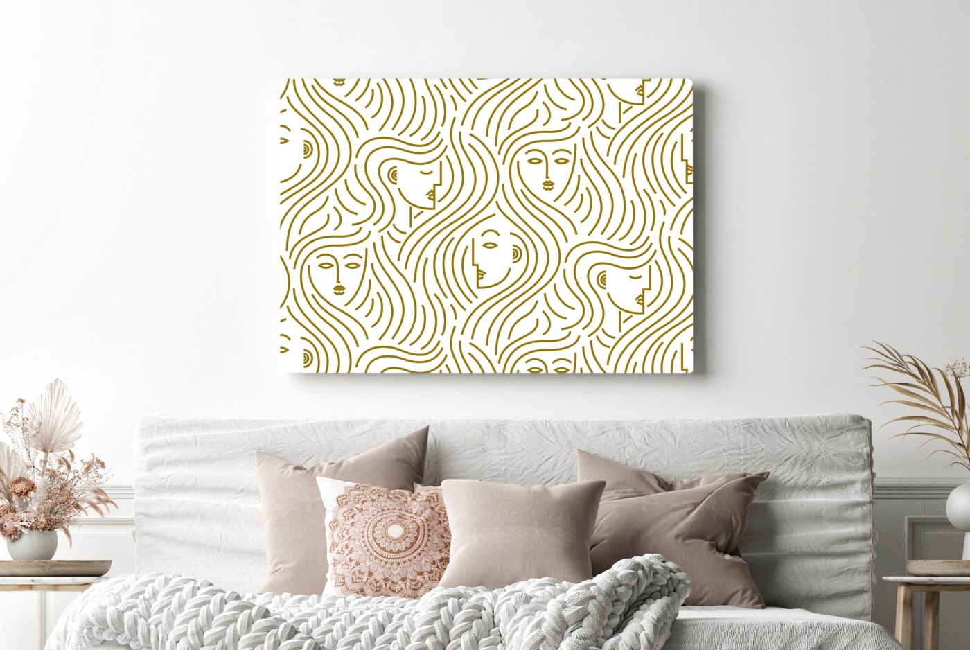 Leinwandbild Goldene fließende gesichter nahtloses muster