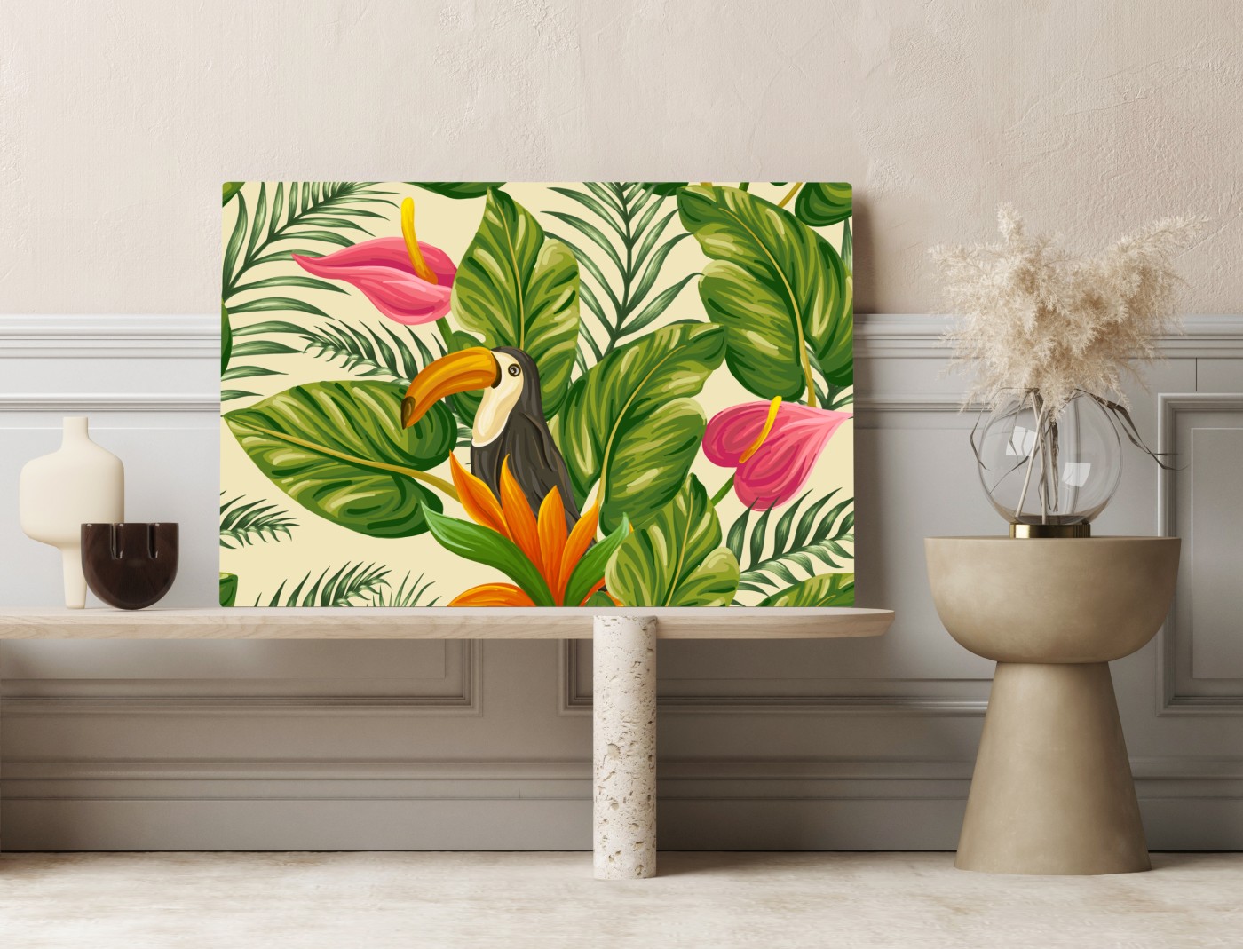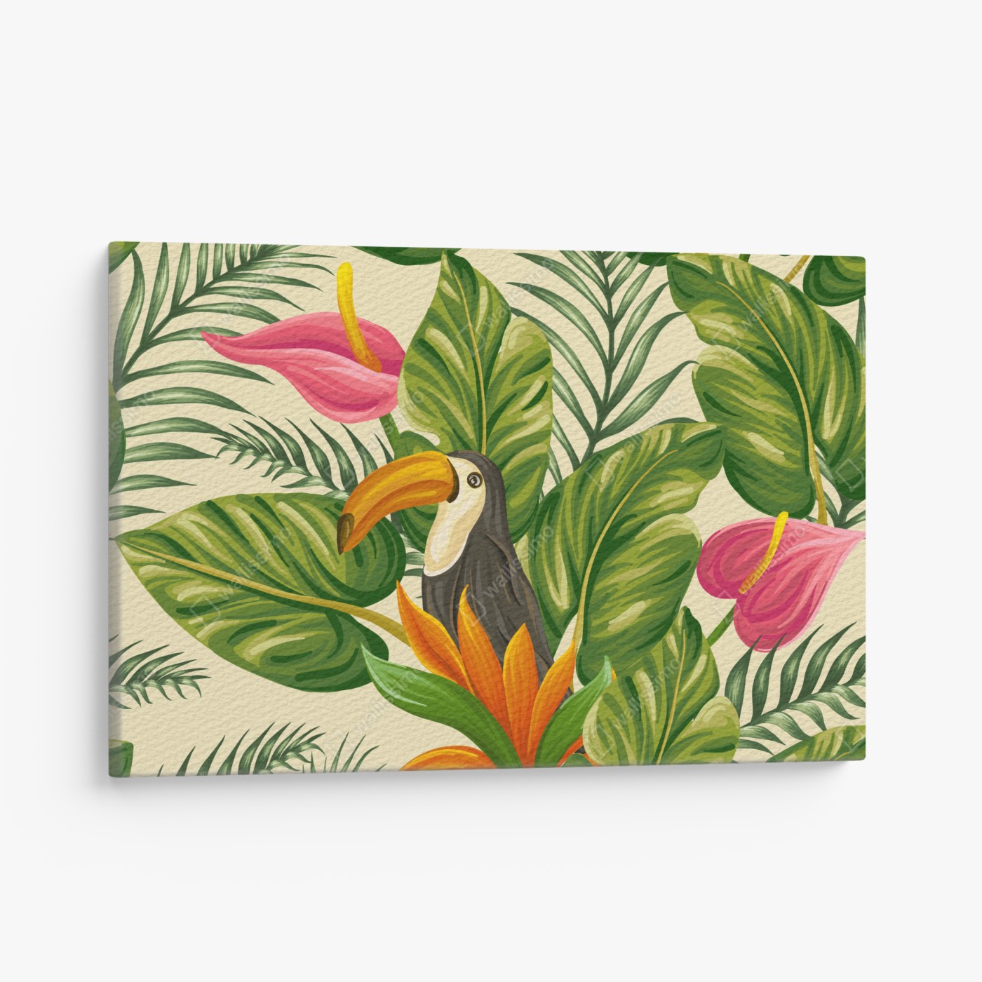 Leinwandbild Tropisches botanisches muster mit tukan