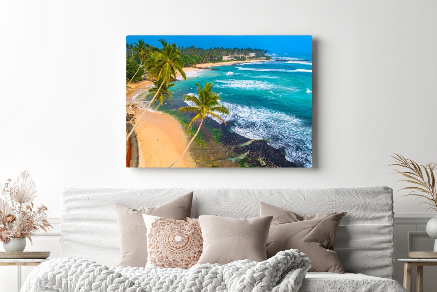Leinwandbild Türkisfarbene tropische küste mit palmen