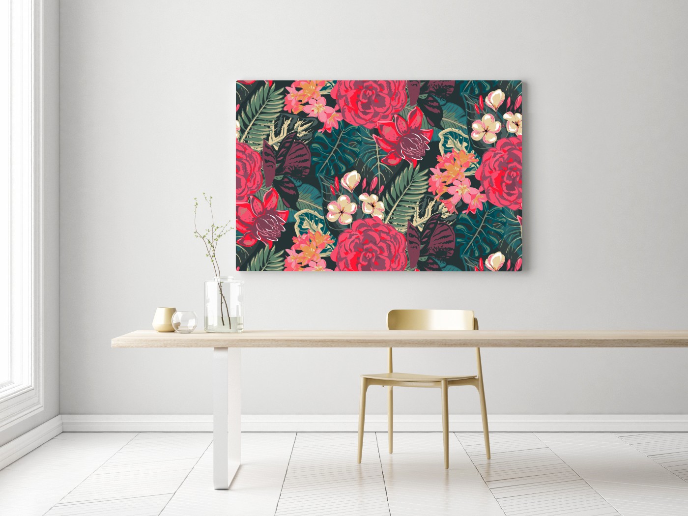 Leinwandbild Tropisches blumenmuster in rosa und türkis
