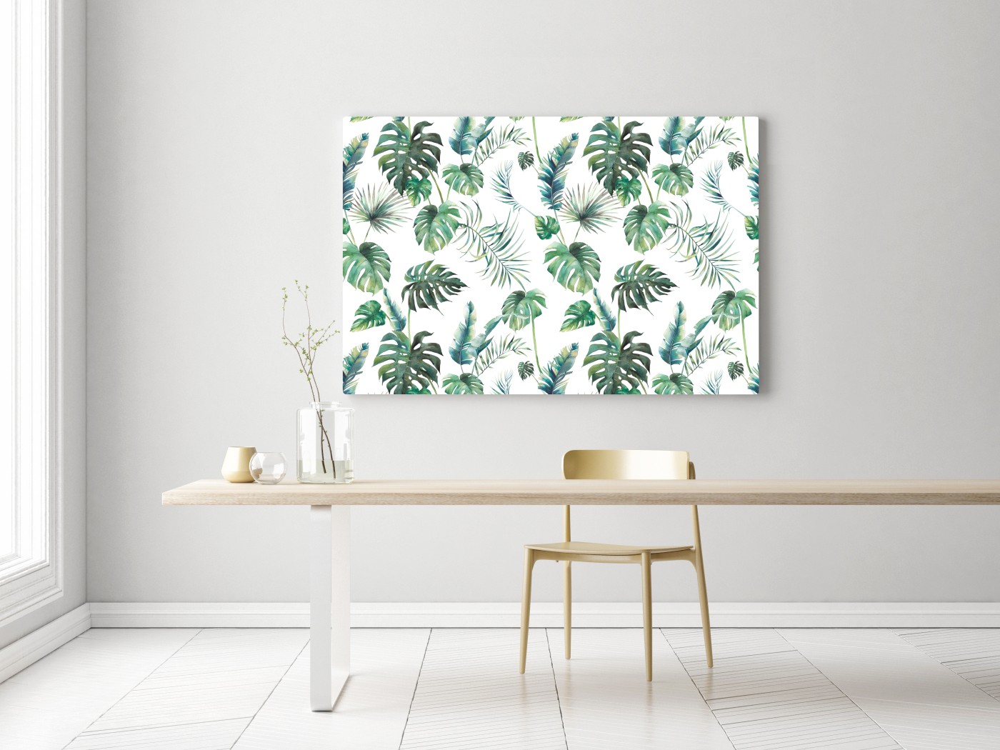 Leinwandbild Aquarell tropische blätter muster