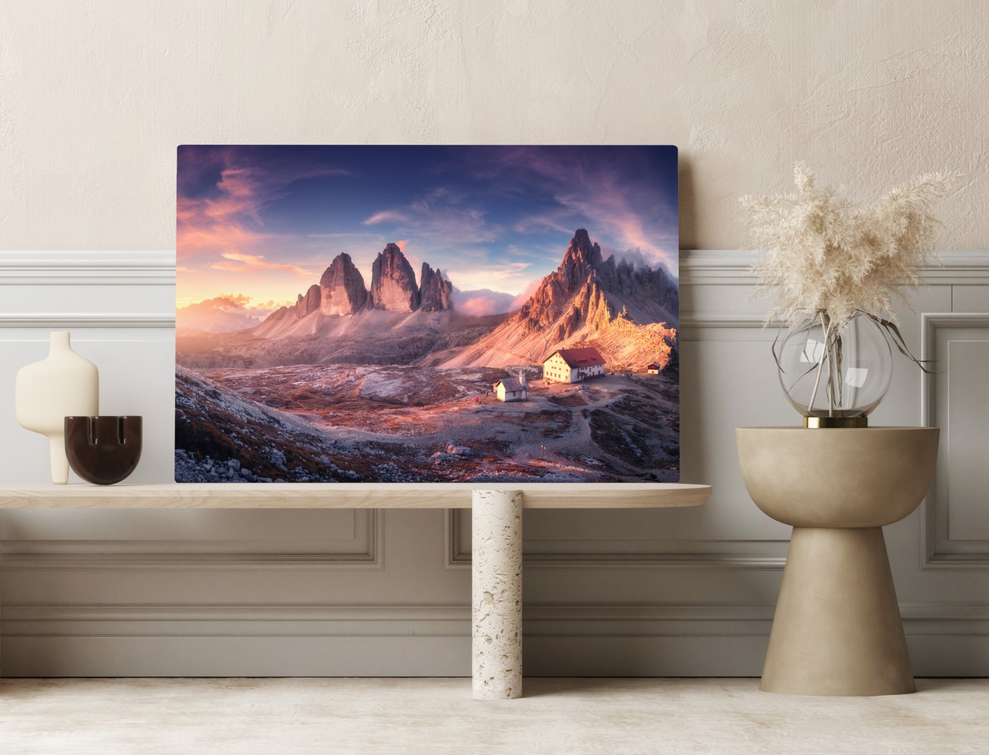 Leinwandbild Sonnenaufgang über den gipfeln der Dolomiten