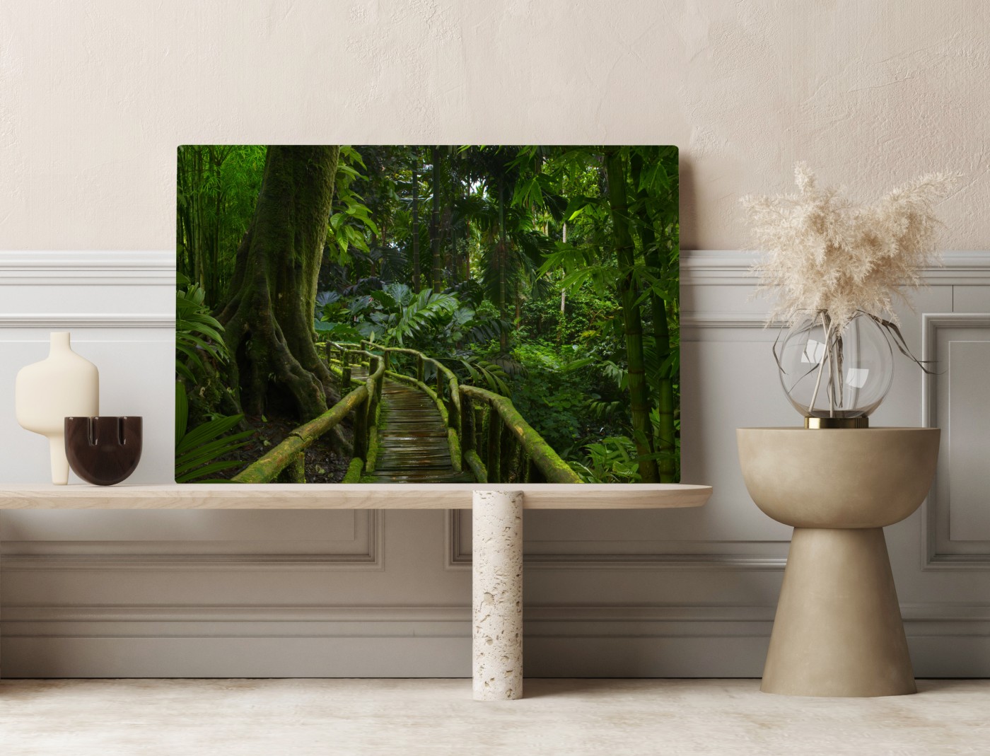 Leinwandbild Ruhiger dschungelsteg durch üppigen regenwald