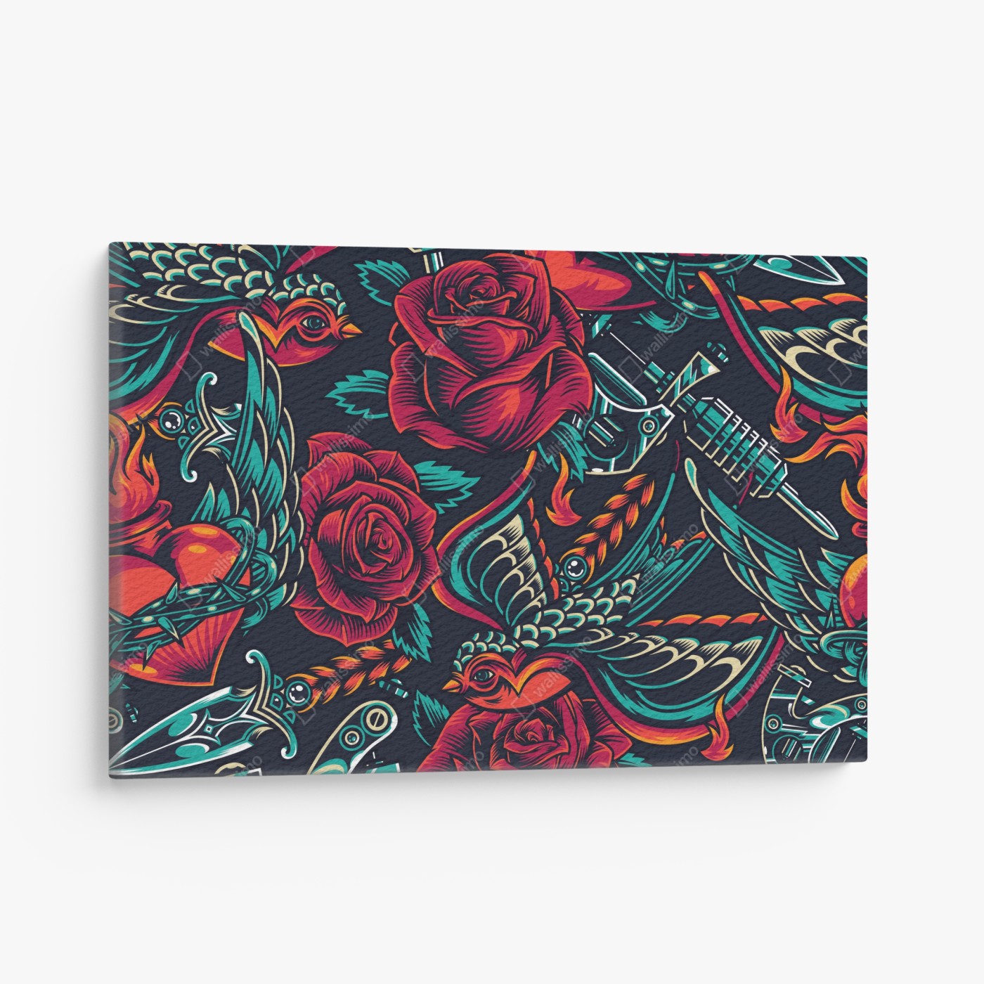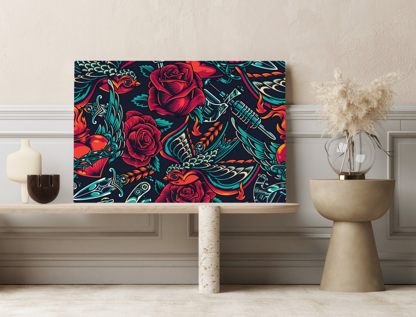 Leinwandbild Kräftiges tätowierungsmuster mit rosen