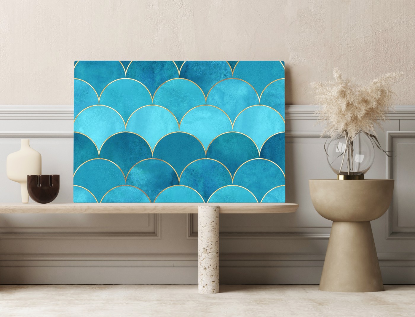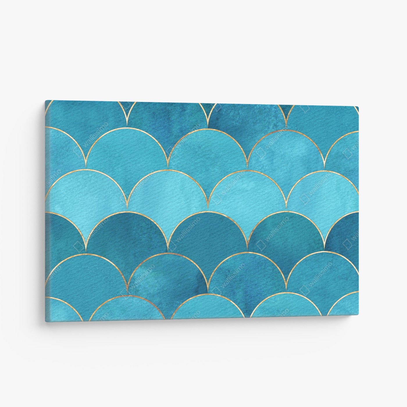 Leinwandbild Türkis schuppenmuster mit goldakzenten