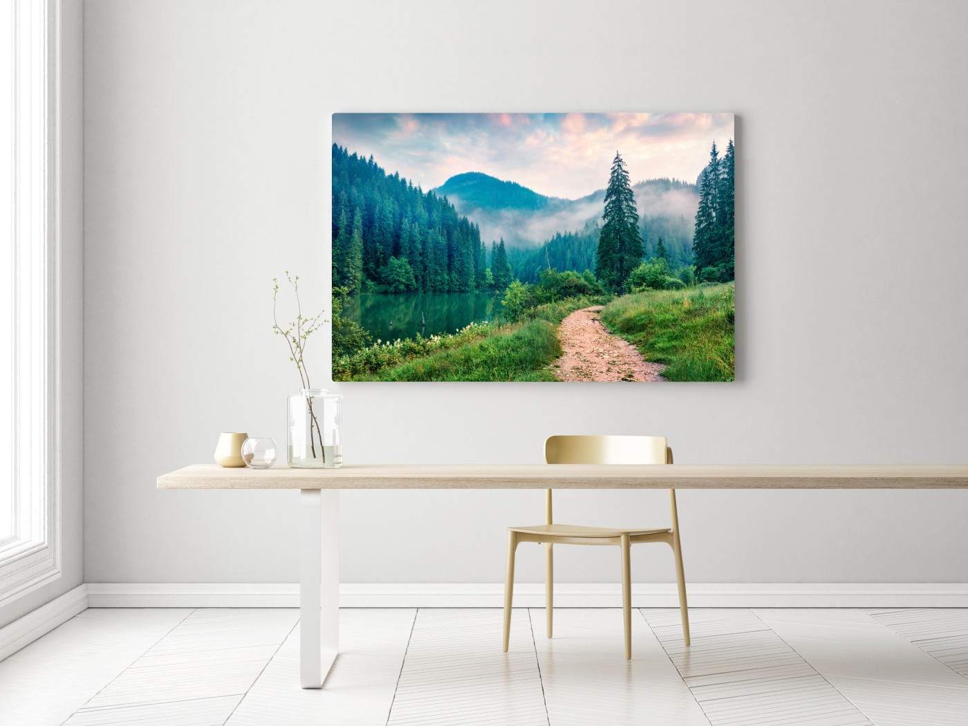 Leinwandbild Nebliger morgen am Lacu Roșu