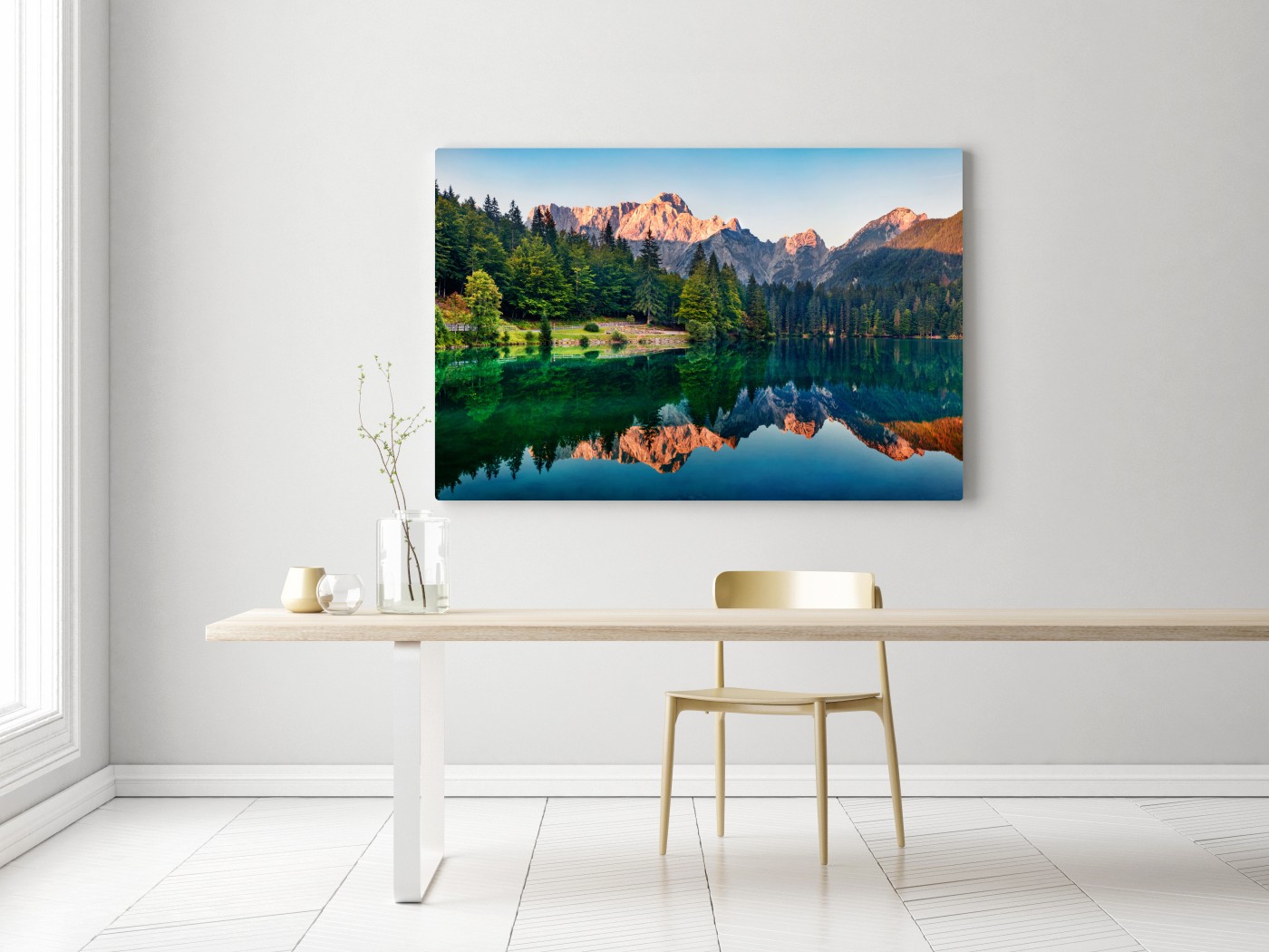 Leinwandbild Ruhiger morgen am Fusine See, Julische Alpen