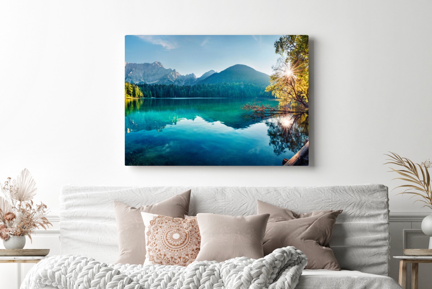 Leinwandbild Sonniger Fusine see, Julische Alpen