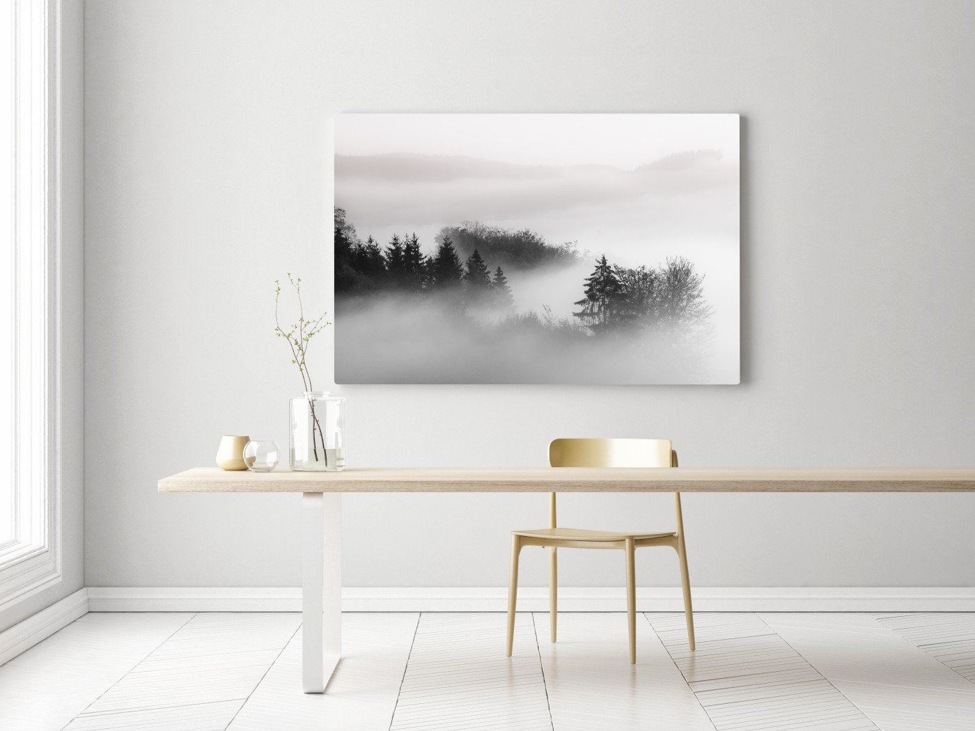 Leinwandbild Nebliger wald in grautönen