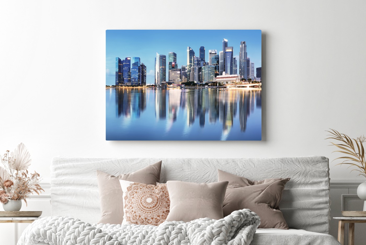 Leinwandbild Moderne stadtskyline gespiegelt im wasser