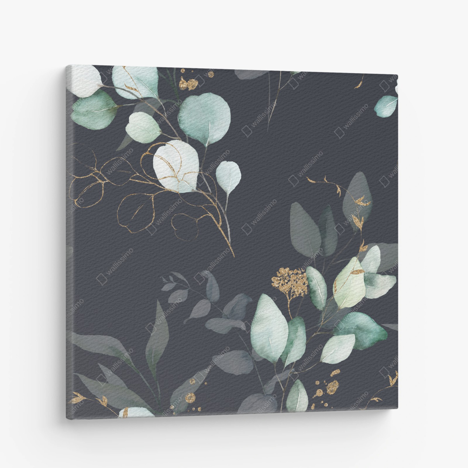 Leinwandbild Eukalyptus aquarellblätter auf dunklem hintergrund