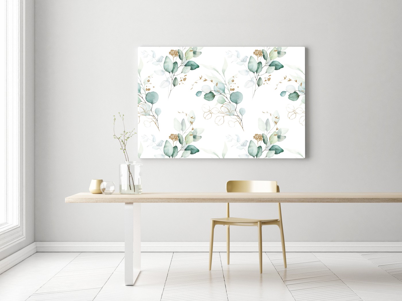 Leinwandbild Eukalyptus aquarell muster in grüntönen