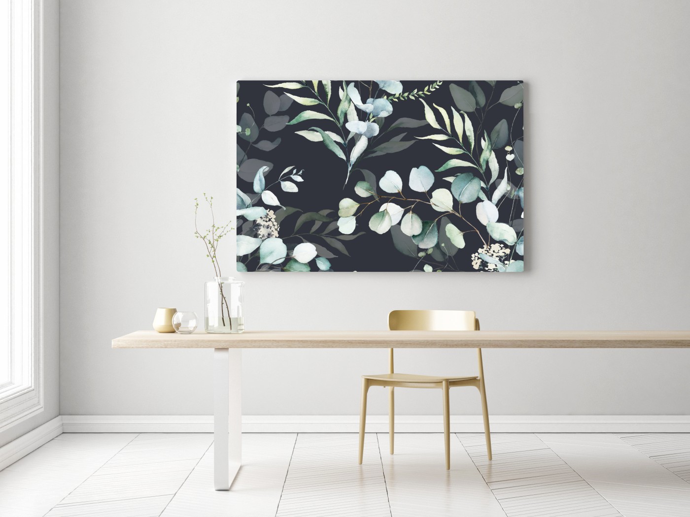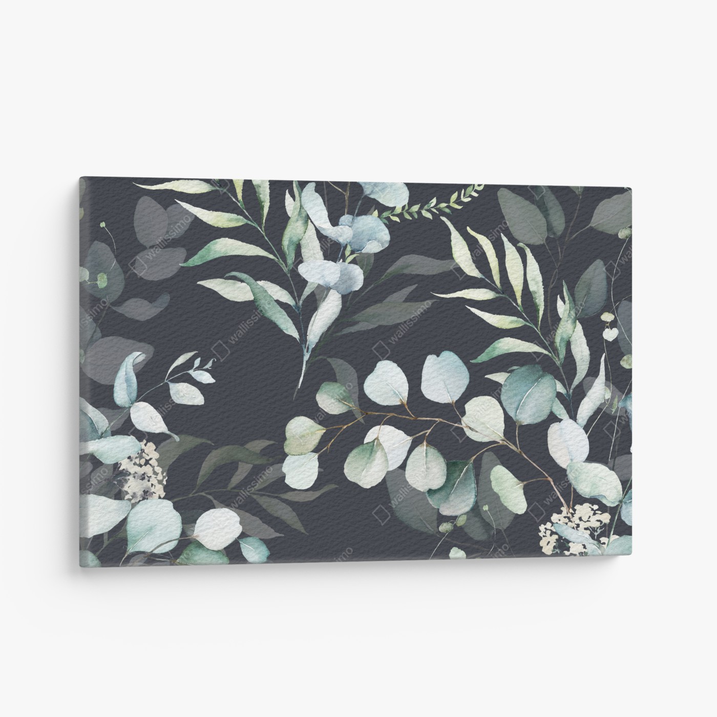 Leinwandbild Eukalyptus aquarell botanisches muster auf dunklem hintergrund