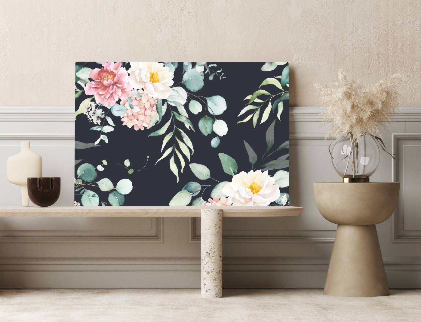 Leinwandbild Elegantes aquarell-blumenmuster auf dunklem hintergrund