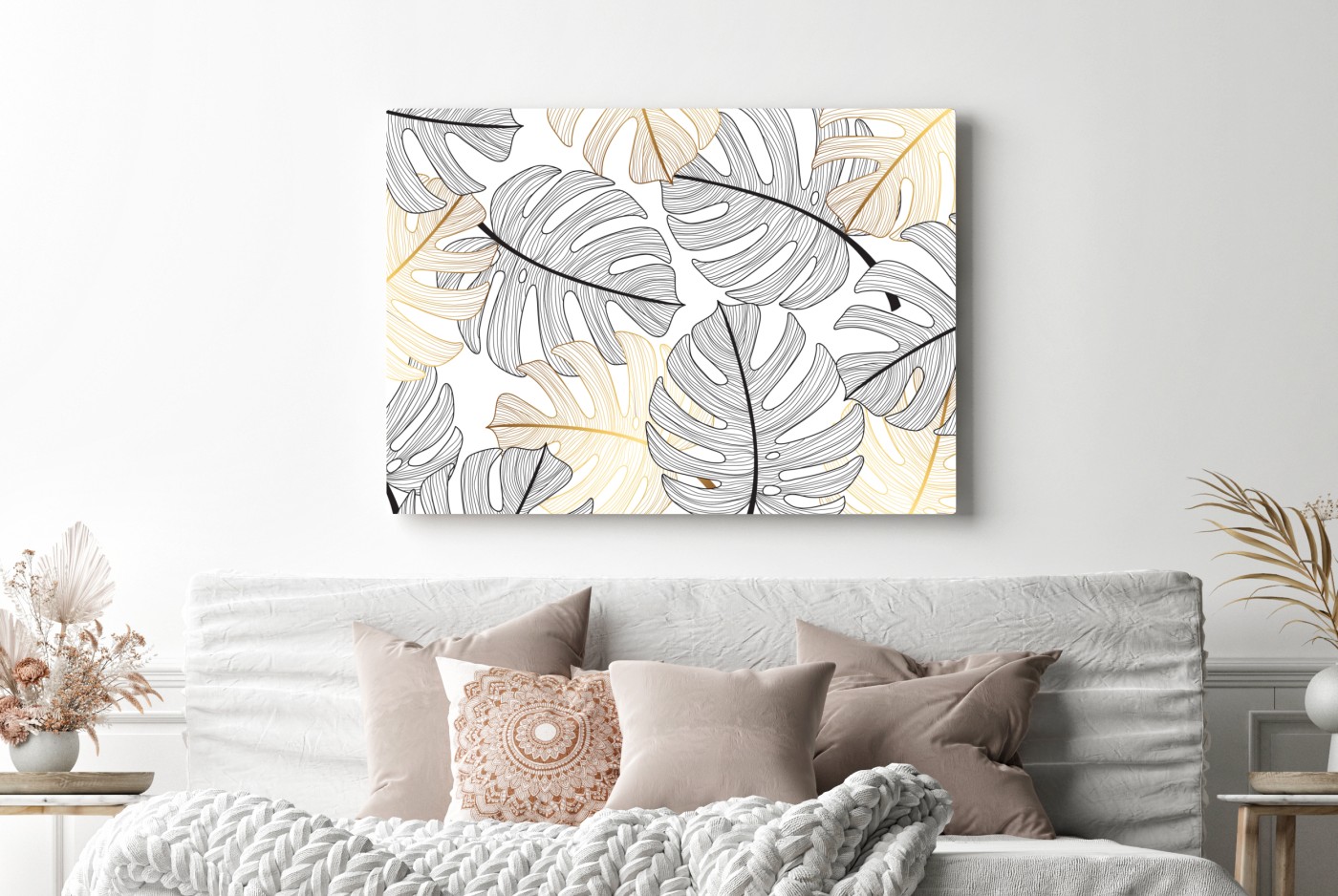 Leinwandbild Monstera-blattmuster mit goldakzenten