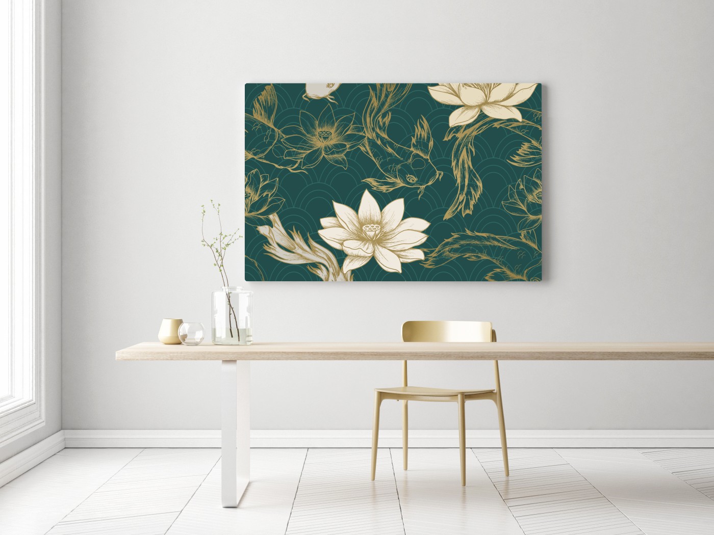Leinwandbild Orientalisches koi- und lotosmuster in türkis und gold