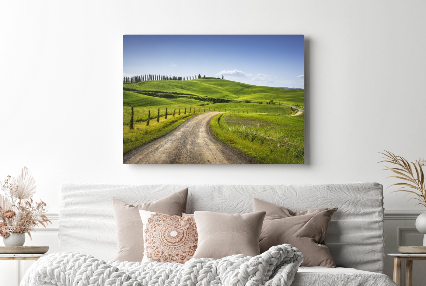 Leinwandbild Ländliche straße in der Toskana durch grüne hügel