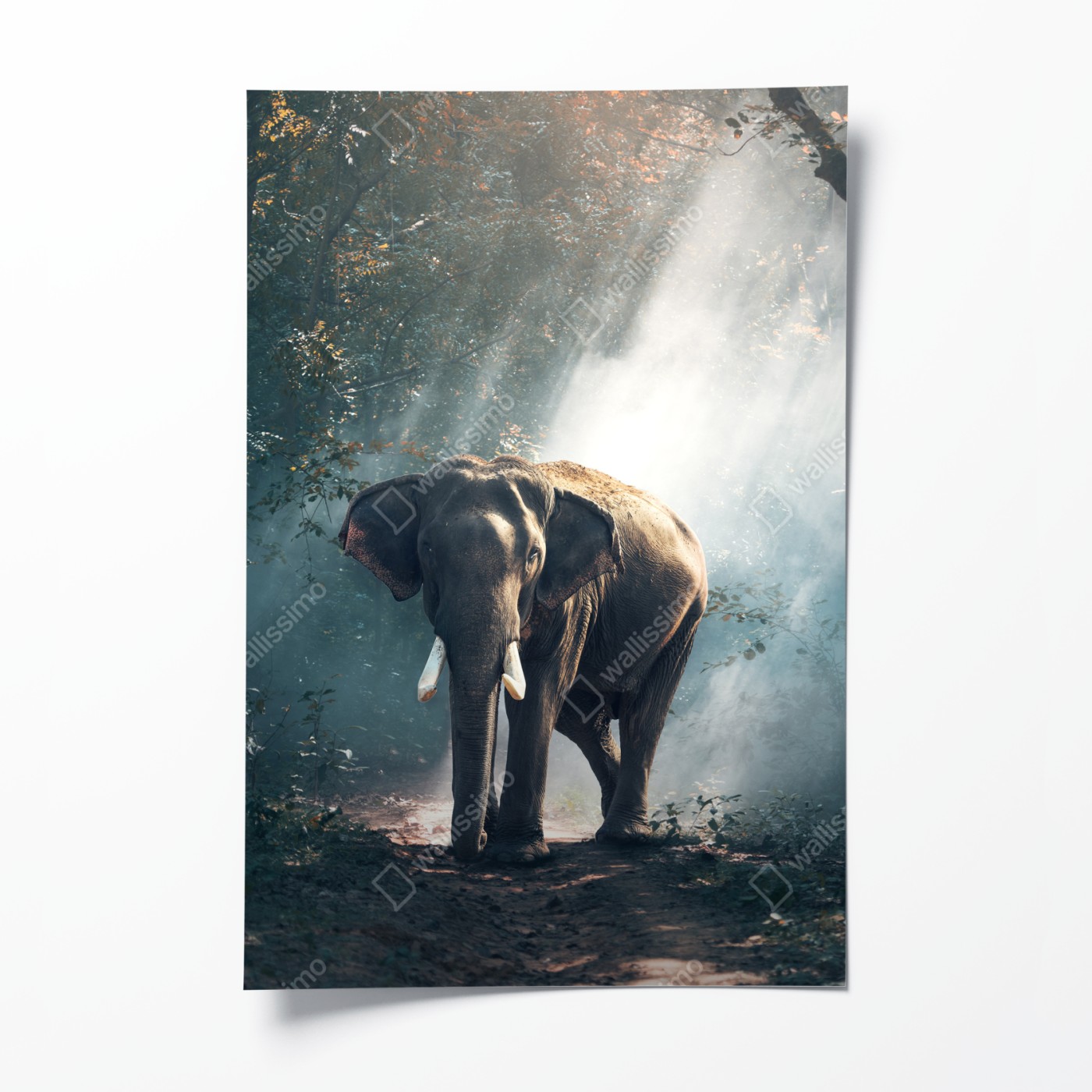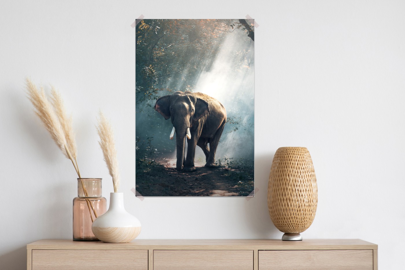 Poster Majestätischer elefant im sonnenlichtdurchfluteten wald