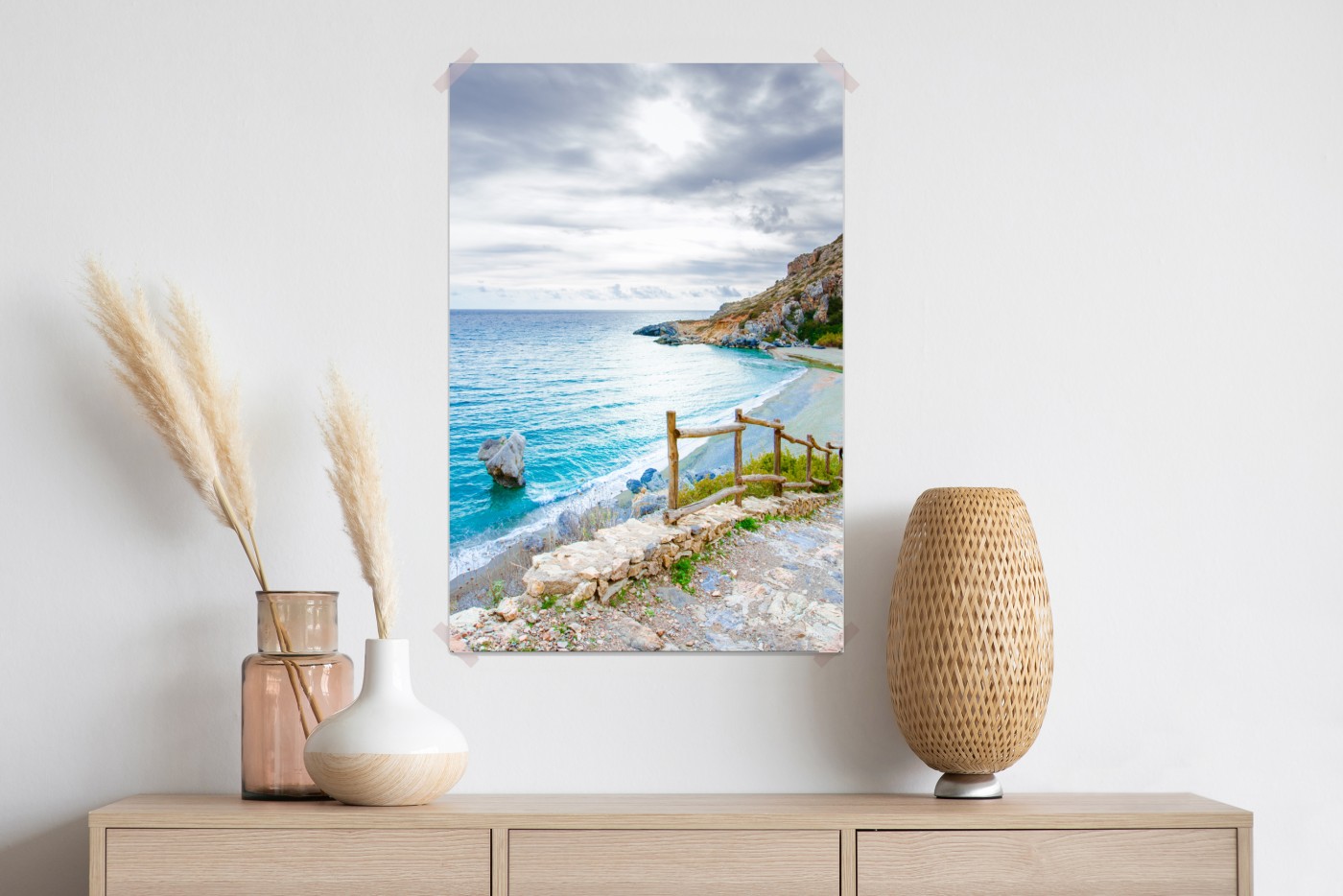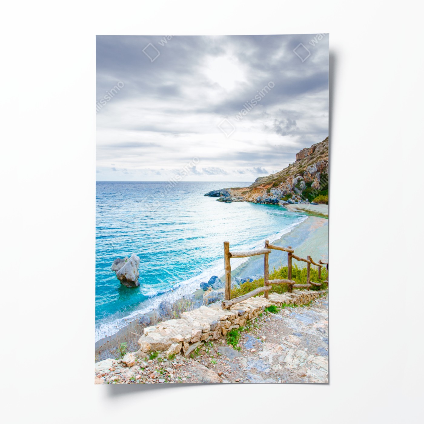 Poster ruhige türkisfarbene bucht mit küstenpfad – Wallnifity®