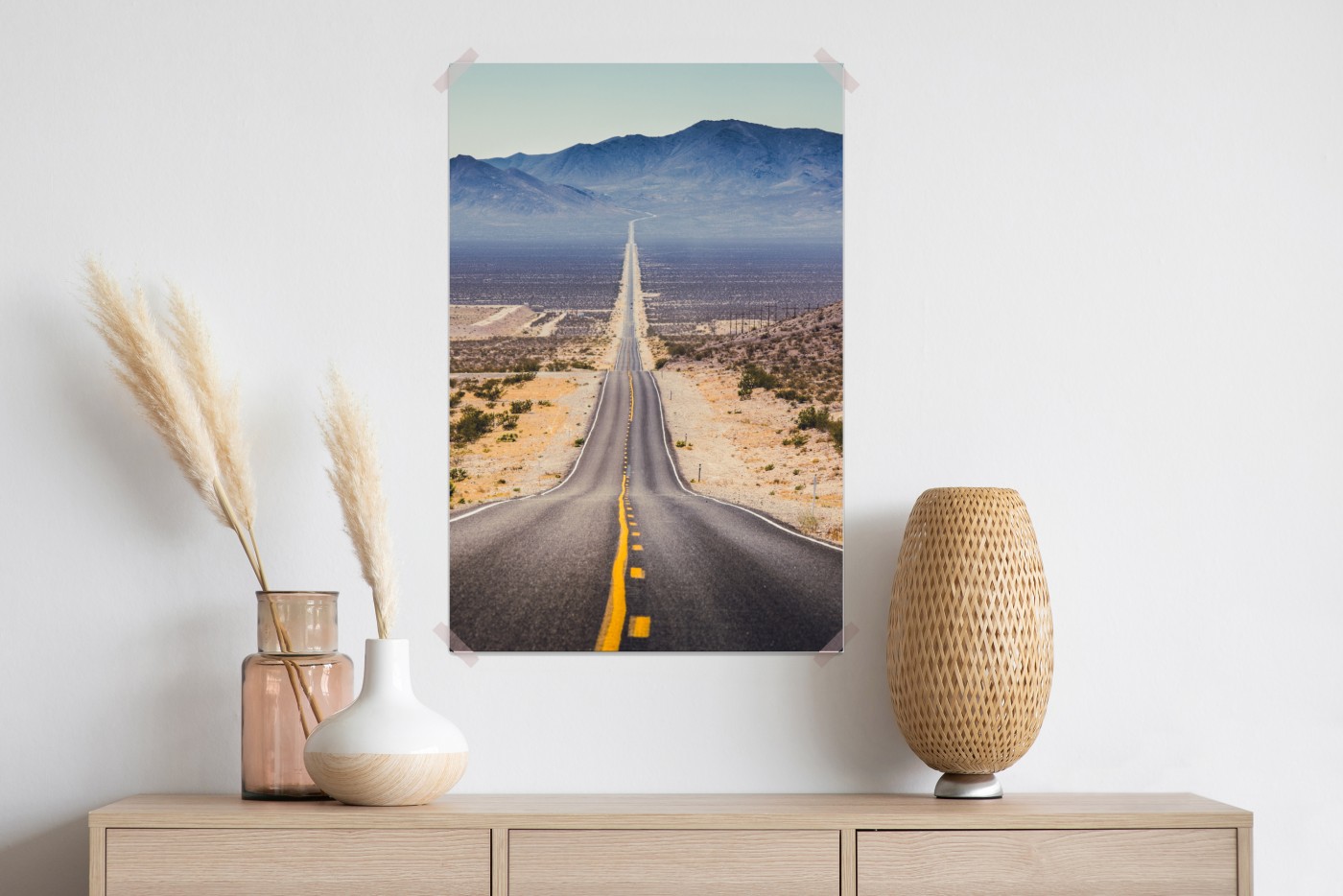 Poster Endlose wüstenstraße in die berge