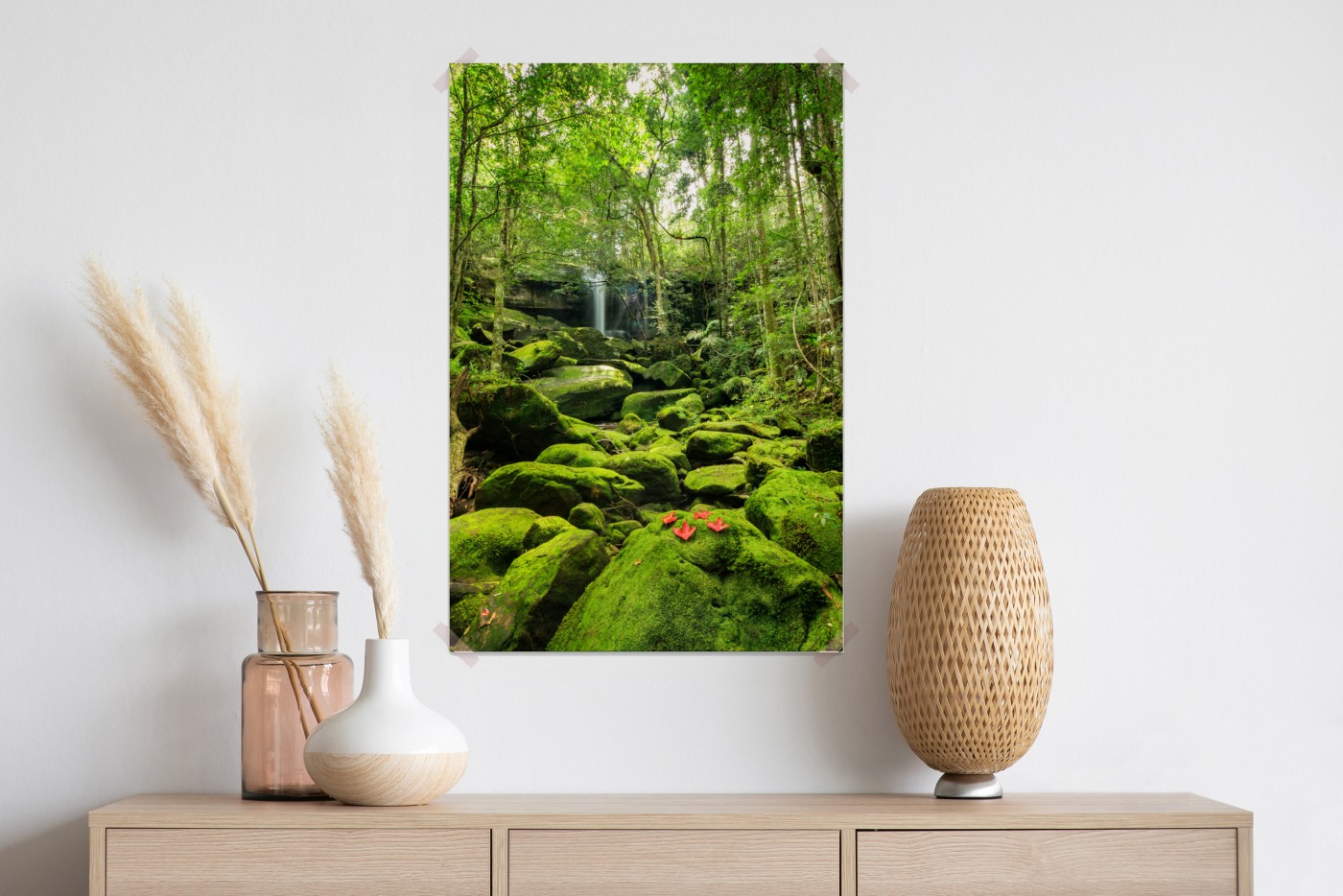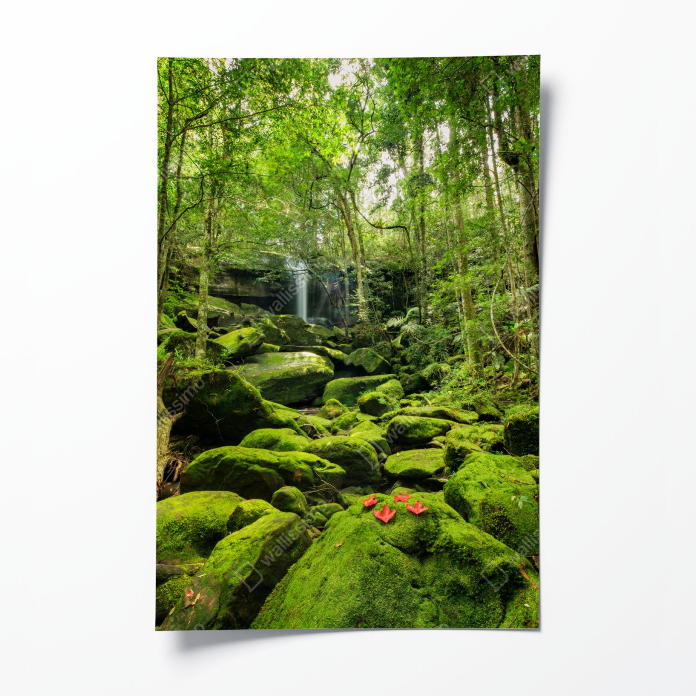 Poster üppiger moosbewachsener wasserfall im tropischen wald – Wallnifity®