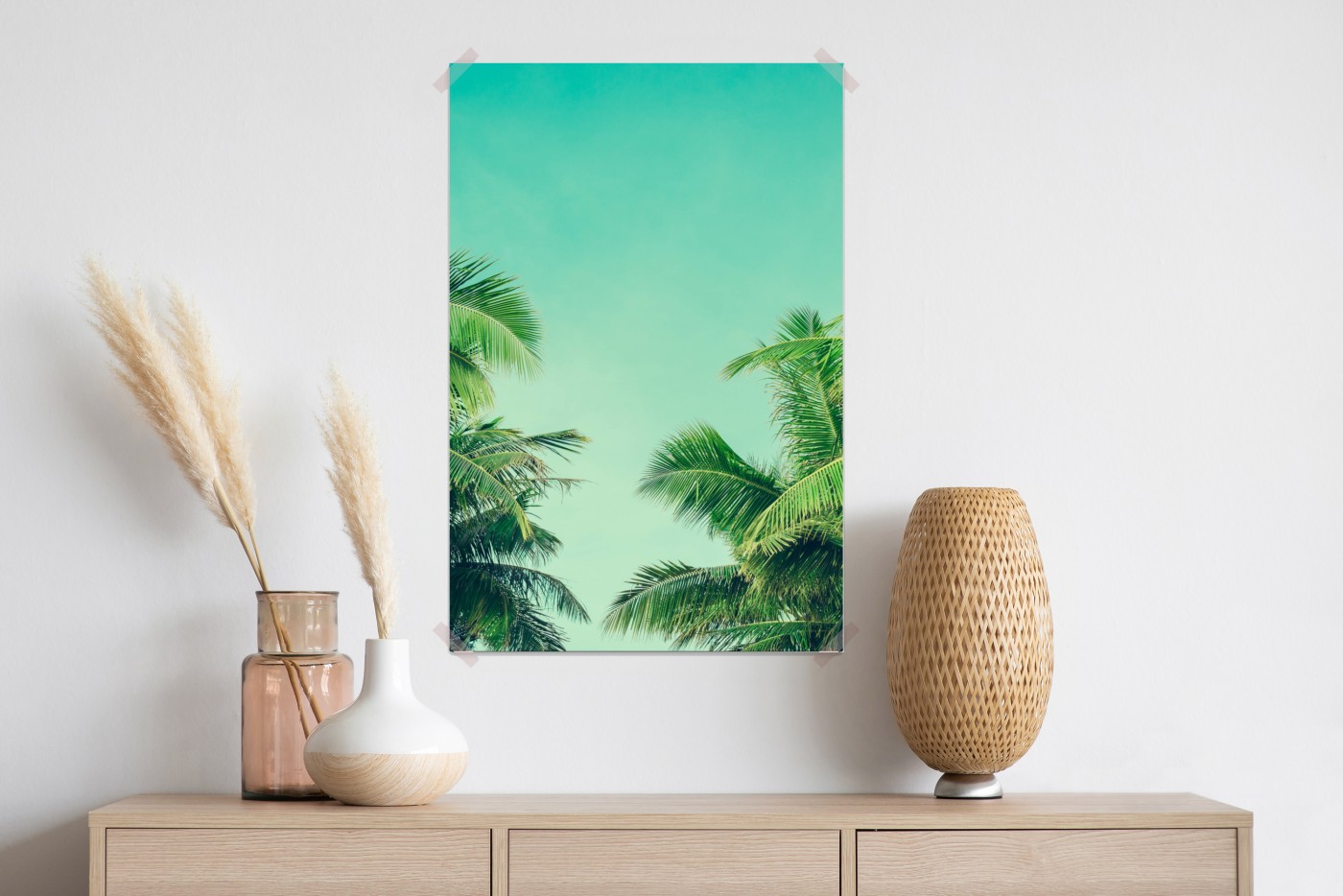 Poster Tropisches palmendach unter türkisfarbenem himmel